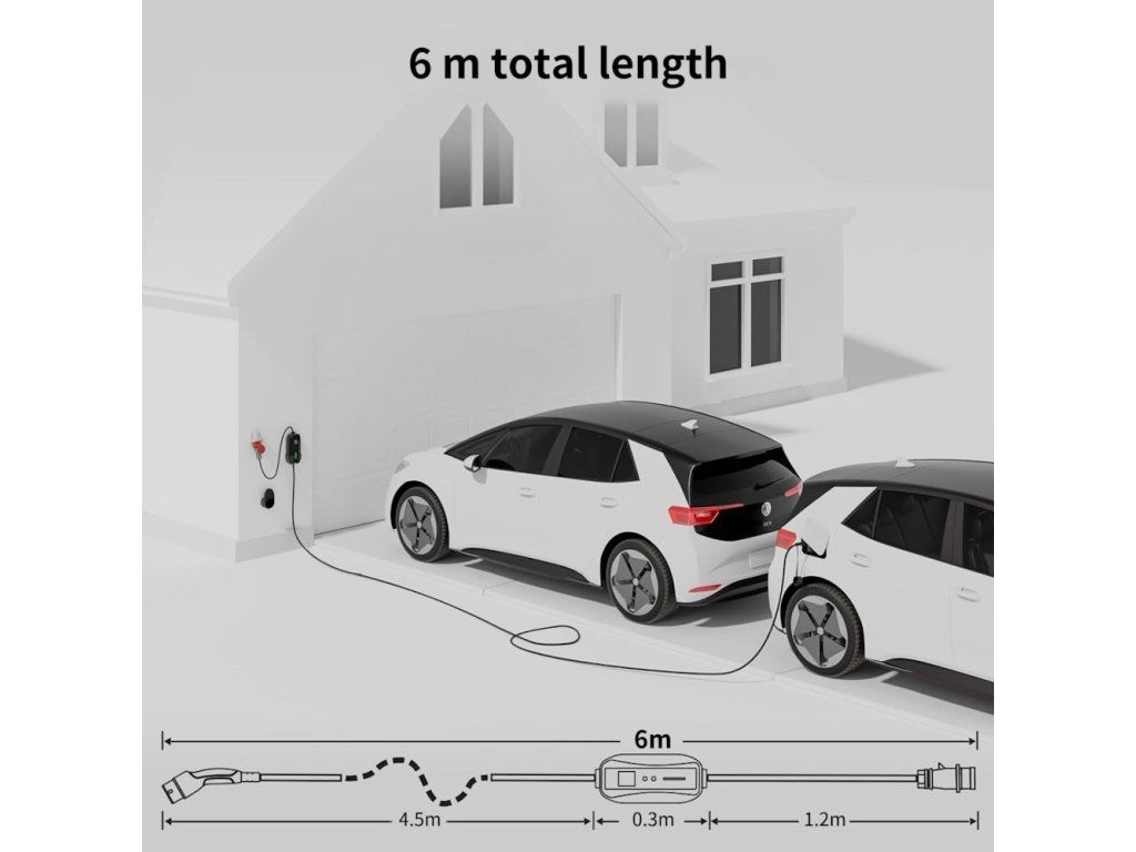Stanice je vybavena 5metrovým kabelem s Type 2 konektorem a CEE zástrčkou, včetně adaptéru CEE na Shuko pro jednofázové připojení. Integrované WiFi a Bluetooth umožňuje vzdálené ovládání přes TUYA aplikaci s možností monitorování nabíjecího procesu v reálném čase.