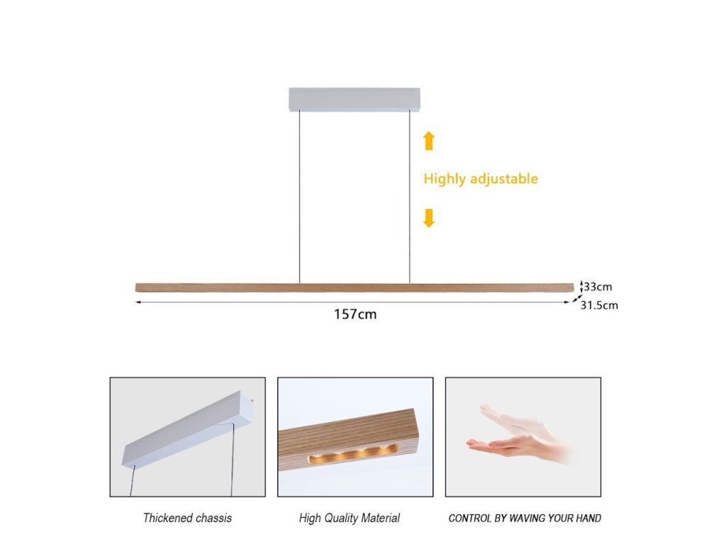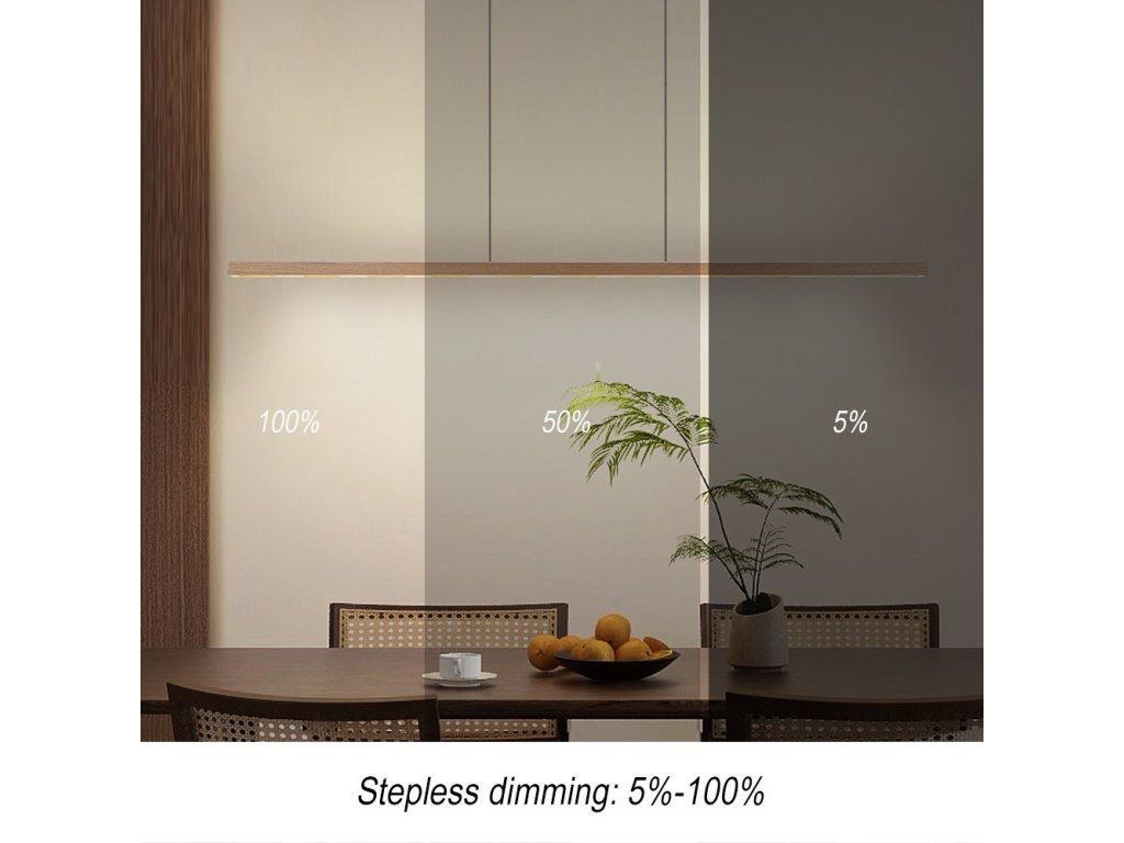 Moderní chytré závěsné svítidlo kombinující přírodní krásu ořechového dřeva s pokročilou LED technologií a Wi-Fi ovládáním.