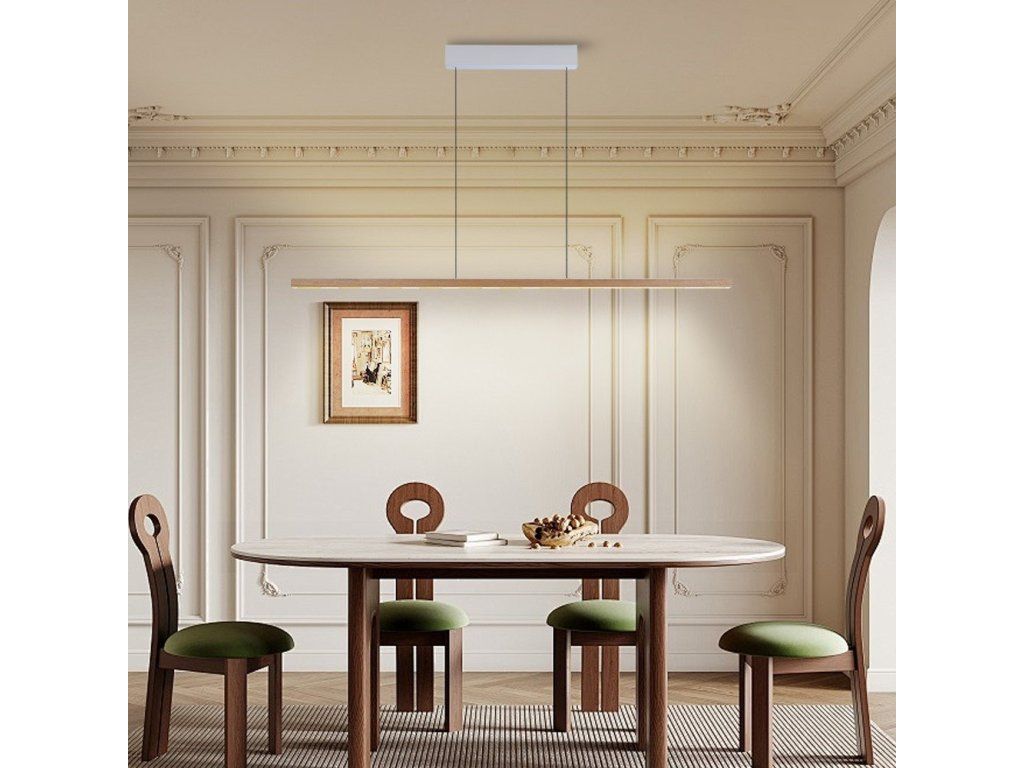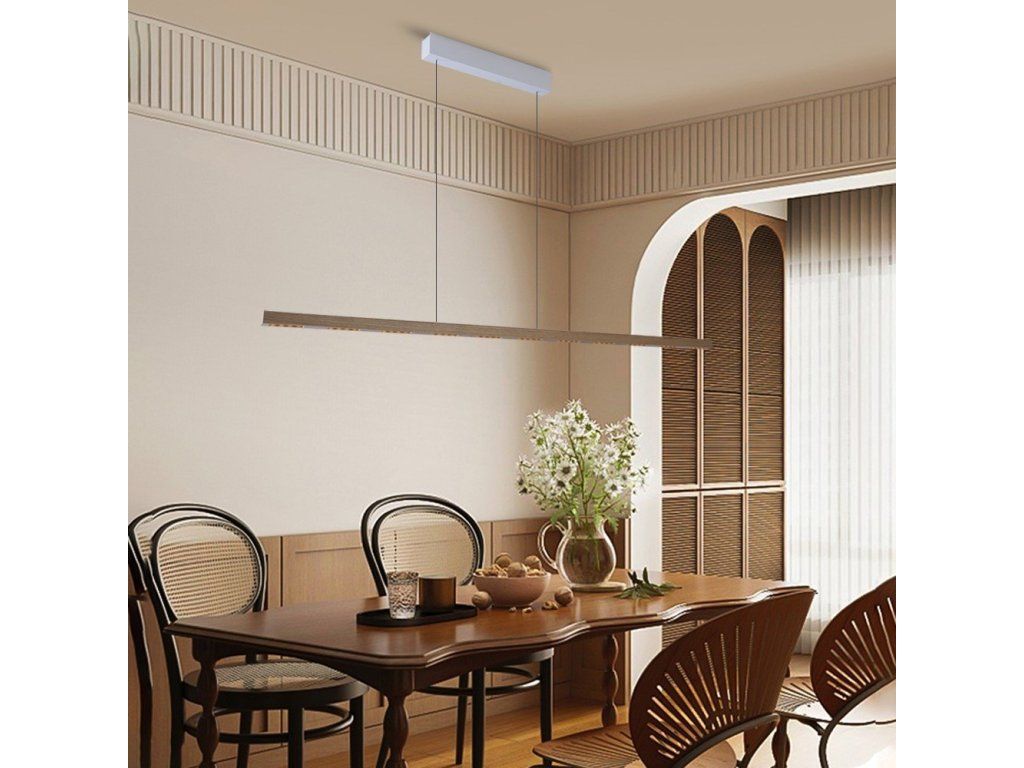 Svítidlo z řady MADEIRA Wood-Line představuje dokonalou harmonii mezi přírodními materiály a moderní technologií. S délkou 152 cm a elegantním designem z ořechového dřeva s černou monturou vytváří působivý designový prvek pro kuchyně, jídelny i obývací pokoje.