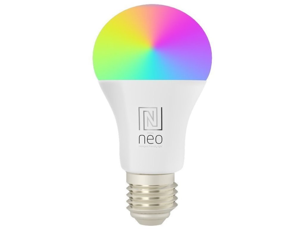 IMMAX NEO E27 11 W RGB+CCTChytrá, stmívatelná, barevná LED žárovka umožňuje nastavení barvy a jasu světla dle aktuální potřeby. Kromě RGB barevné škály je možné měnit také teplotu světla od teplé až po studenou bílou. Žárovka je založena na bezpečné a spolehlivé bezdrátové komunikaci ZigBee 3.0.