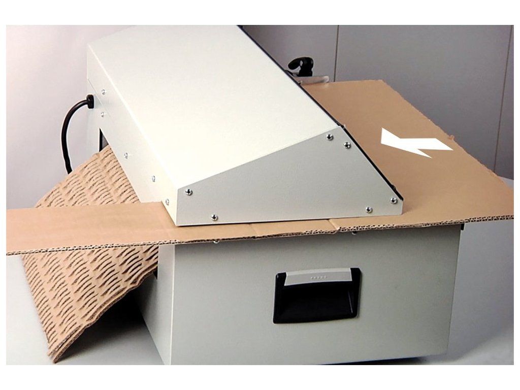 KOBRA FlexPack Desktop představuje inovativní způsob, jak přeměnit použité kartony na vysoce kvalitní výplňový a tlumicí materiál. Stroj současně řeže a perforuje karton s příčným řezem 6 × 60 mm a dokáže zpracovat 2–3 vrstvy kartonu najednou při pracovní šířce 427 mm.