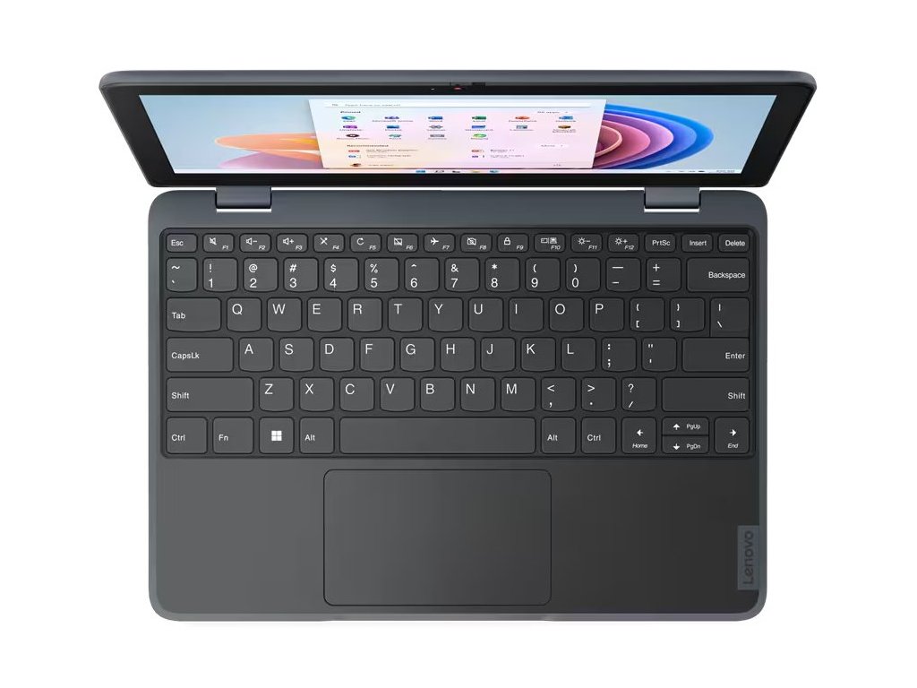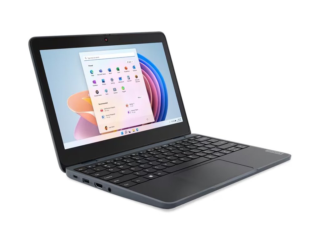 Lenovo 100w Yoga Gen4Základem tohoto notebooku je čtyřjádrový procesor Intel N100, pracující na frekvenci 1,0 GHz, doplněný 4 GB operační paměti. Vybaven je 11,6" displejem s HD rozlišením 1366 × 768 bodů. Obrazová data má na starost integrovaná grafická karta Intel UHD. Pro data je k dispozici SSD disk s kapacitou 128 GB. Samozřejmostí je připojení Wi-Fi a Bluetooth. Notebook je dodáván s předinstalovaným operačním systémem Windows 11 Pro.