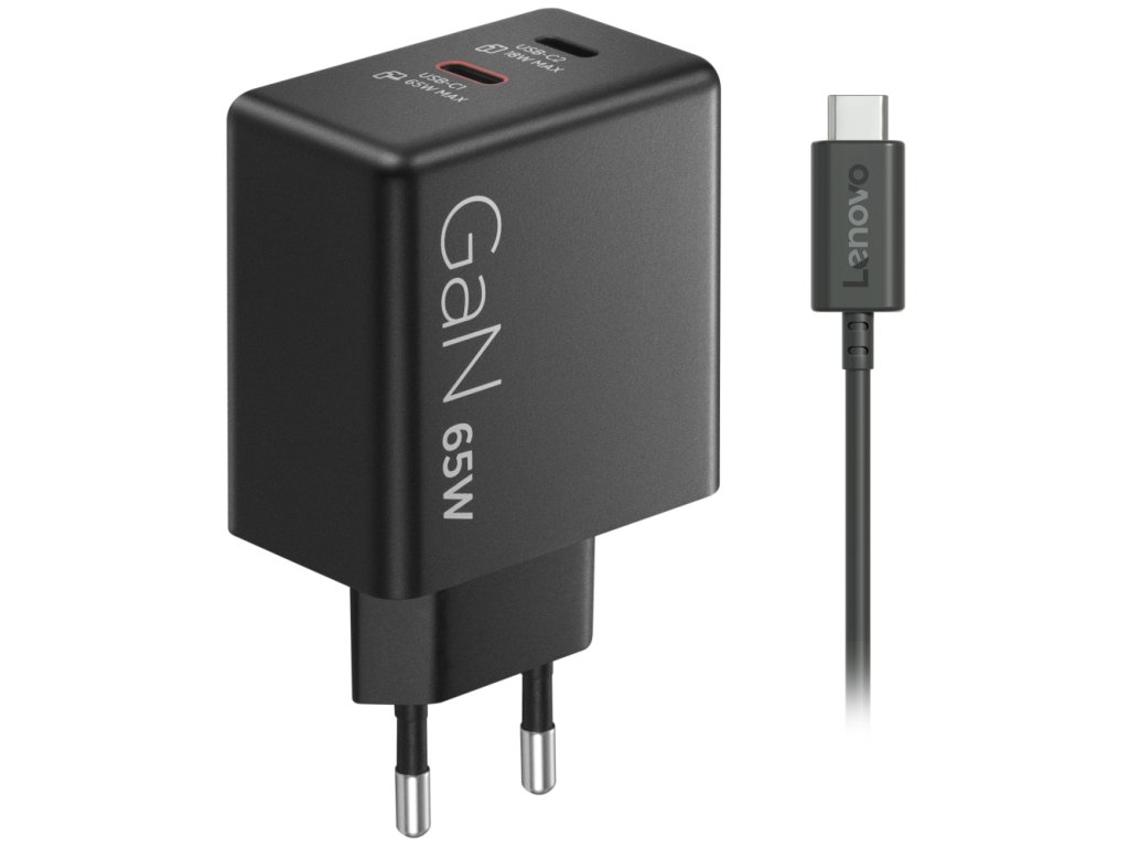 Lenovo Dual USB-C 65W GaN Charger, black