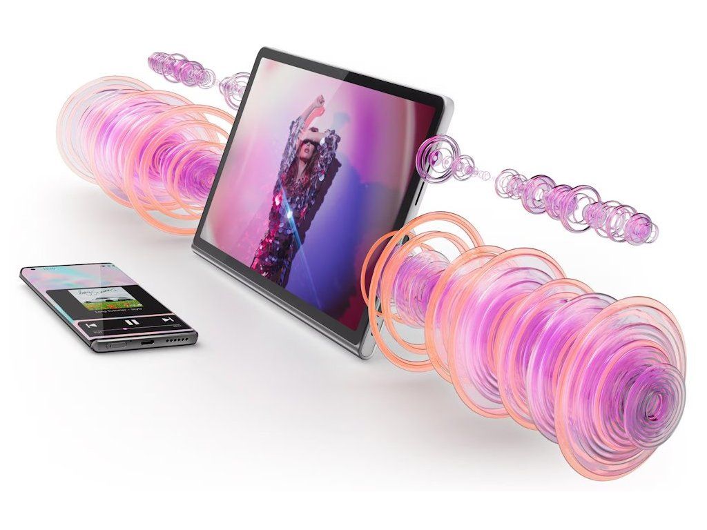 Tablet disponuje unikátním audio systémem složeným z osmi JBL® reproduktorů – čtyři výškové měniče (tweeters) a čtyři basové jednotky s vyvážením sil zajišťují prostorový zvuk s podporou Dolby Atmos®. Speciální režim Bluetooth® reproduktoru umožňuje využít tablet jako samostatný Hi-Fi reproduktor. Certifikace Hi-Res Audio garantuje studiovou kvalitu zvuku při použití kabelových sluchátek připojených k 3,5mm audio jacku.