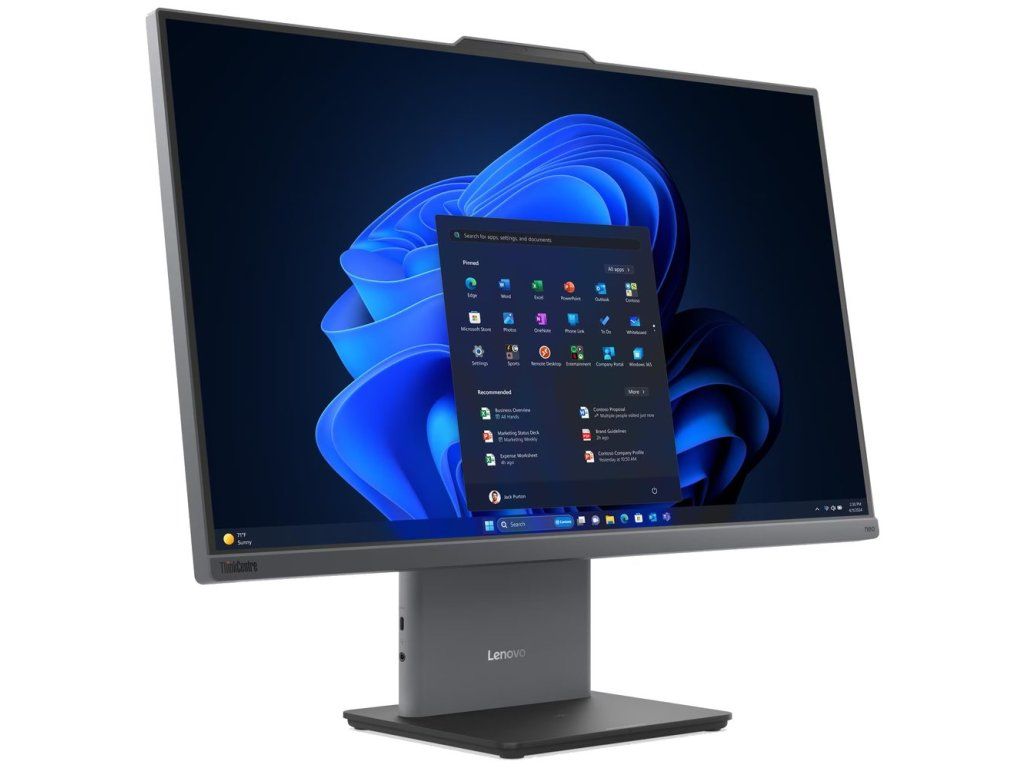 Kvalitní 23,8" IPS displej s rozlišením Full HD (1920 × 1080 px) nabízí pokrytí 99% barevného prostoru sRGB a jas 250 nitů s antireflexní úpravou. Počítač disponuje 16GB DDR5-5600 RAM v jednom slotu s možností rozšíření až na 32 GB a rychlým 512GB NVMe SSD s podporou Opal šifrování. Elegantní konstrukce v barvě Luna Grey zahrnuje bezdrátovou nabíječku a kvalitní audio systém HARMAN s výkonem 2× 3 W.
