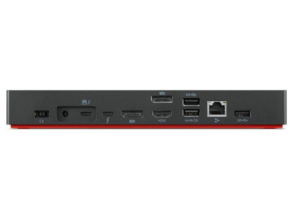 Lenovo ThinkPad Thunderbolt 4 Workstation Dock 230 WDokovací stanice nabízející hned několik praktických portů. Připojení k počítači je realizováno skrze konektor USB typu C s podporou Thunderbolt 4, který slouží jak k přenosu dat, tak i k napájení podporovaných zařízení až do 100 W. V případě zapojení i napájecího konektoru pak až do 230 W. K dokovací stanici lze připojit až čtyři monitory skrze rozhraní HDMI, Thunderbolt 4 nebo DisplayPort s rozlišením 4K při 60 Hz. V případě jednoho připojeného monitoru je podporováno rozlišení až 7680 x 4320 obrazových bodů. Pro připojení periferií disponuje čtyřmi USB 3.1 porty a jedním portem USB typu C. Samozřejmostí je gigabitový RJ-45 port a 3,5 mm audio konektor. Potěší také slot pro bezpečnostní zámek či tlačítko pro zapnutí stanice. Díky VESA uchycení lze dokovací stanici připevnit na stěnu a získat tak krásně uklizený stůl bez kabelů.