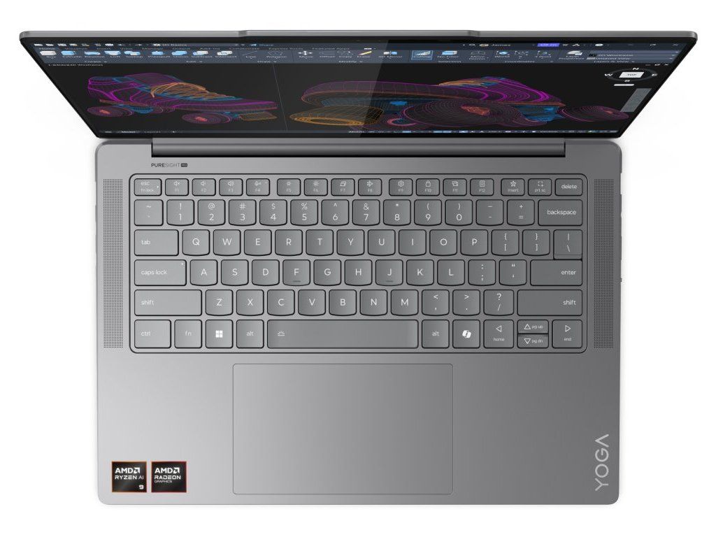 Lenovo Yoga Pro 7 14ASP9Základem tohoto notebooku je desetijádrový procesor AMD Ryzen AI 9 365 pracující na frekvenci 2,0 GHz, doplněný o 32 GB operační paměti. Vybaven je 14,5" OLED displejem s 2,8K rozlišením 2880 × 1800 obrazových bodů a obnovovací frekvencí 120 Hz. Obrazová data má na starost integrovaná grafická karta AMD Radeon 880M. Pro data je k dispozici SSD disk s kapacitou 1 TB. Notebook je vybaven Full HD IR webkamerou a bezdrátovým připojením Wi-Fi a Bluetooth. Dodáván je s operačním systémem Windows 11 Pro.