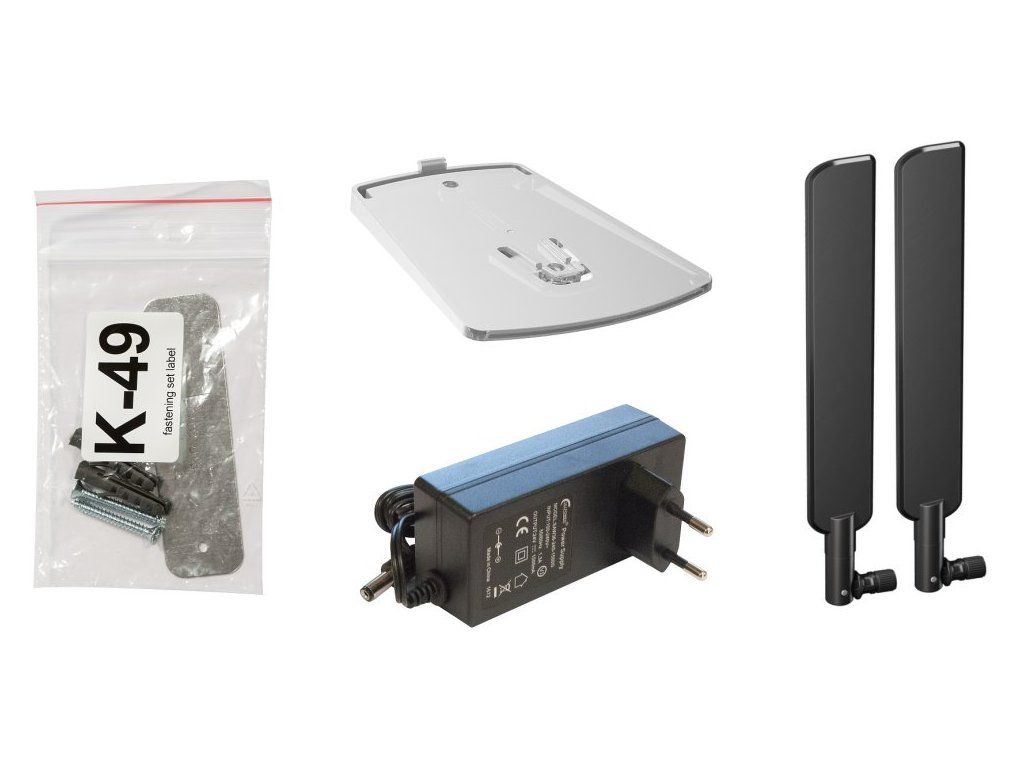 - Router/AP je dodáván včetně napájecího zdroje a držáku pro montáž na zeď nebo horizontální/vertikální umístění.