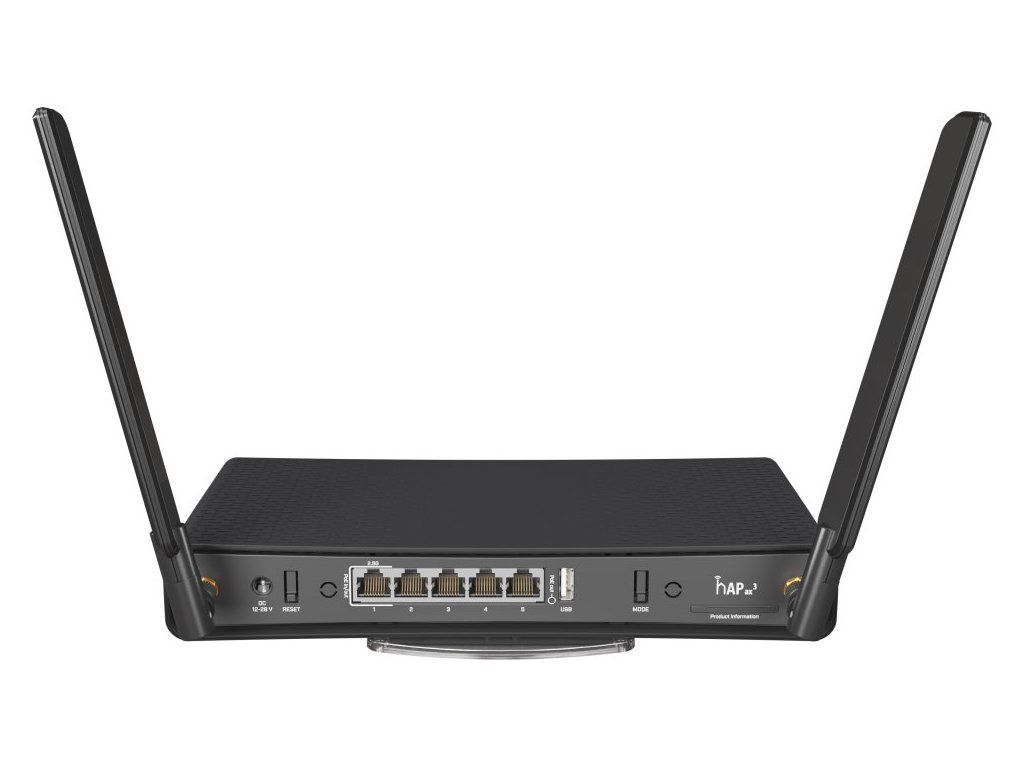 MikroTik C53UiG+5HPaxD2HPaxD, hAP ax3, 4x GbE, 1x 2.5 GbE, 2.4+5GHz Wi-Fi 6, USB 3.0, USB, PSU. L4