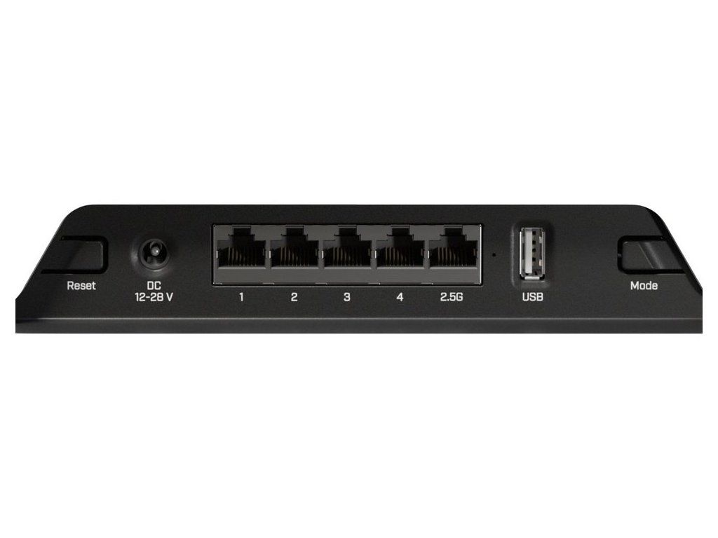 Router nabízí komplexní konektivitu s pěti Ethernet porty včetně jednoho 2,5G portu pro ultra-rychlé lokální připojení. USB 2.0 port typu A umožňuje připojení externího úložiště nebo záložního modemu. Podpora TR-069 technologie umožňuje vytváření vlastních možností vzdálené správy klientů.