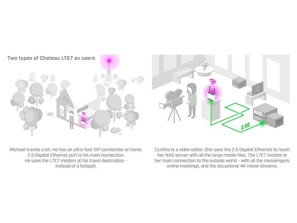 Chateau LTE7 ax je ideální pro zabezpečené domácí kanceláře, malé a středně velké firmy, LTE nebo hybridní nasazení u poskytovatelů internetu i pro domácnosti vyžadující výkon a čistý design. RouterOS v7 poskytuje plnou funkcionalitu pro pokročilé směrování, firewall pravidla a VPN tunely.