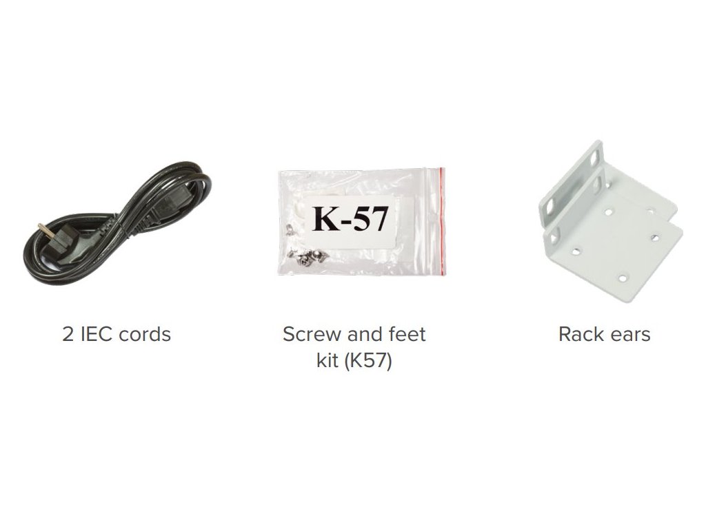 Switch se dodává vč. příslušenství pro montáž do racku a napájecího kabelu do sítě 230 V.