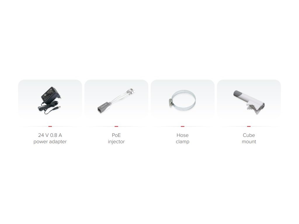 Součástí jednotky je předinstalovaná licence RouterOS MikroTik L4. Tato licence je plně dostačující pro vytvoření spoje "Point to Multipoint" (bod-multibod). Jednotka má integrovaný PoE splitter, lze ji tedy napájet přímo po F/UTP kabelu (PoE+ 802.3af/at).