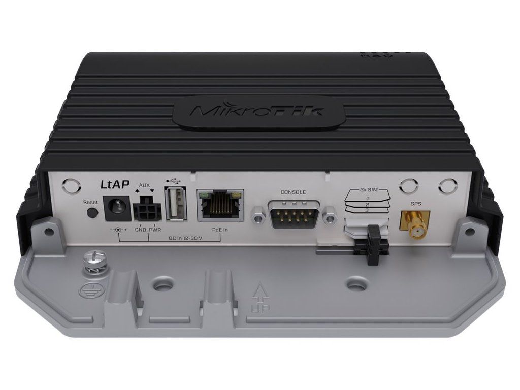 MikroTik LtAP LTE6 kit (2023)Access point v robustním provedení, s 360° pokrytím, integrovaným LTE6 modemem a podporou GPS. Pracuje na frekvenci 2,4 GHz s podporou standardů 802.11b/g/n.