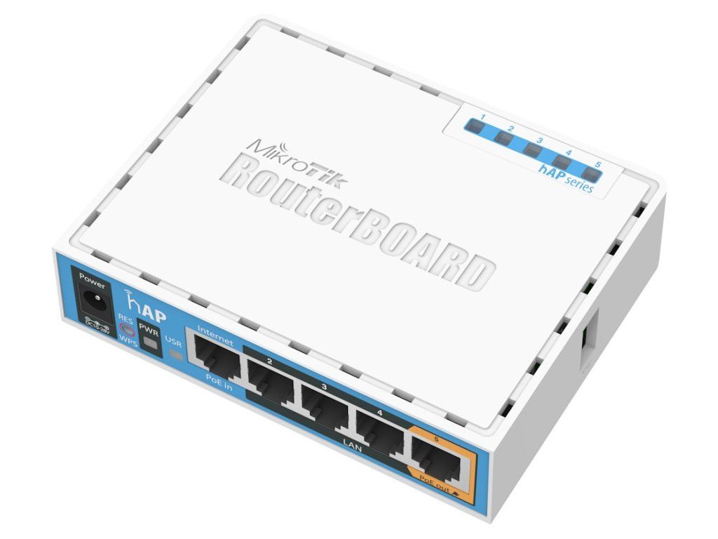 MikroTik RouterBOARD RB951Ui-2nD, hAP,CPU 650MHz, 5x LAN, 2.4Ghz 802.11b/g/n, USB, 1x PoE out, L4