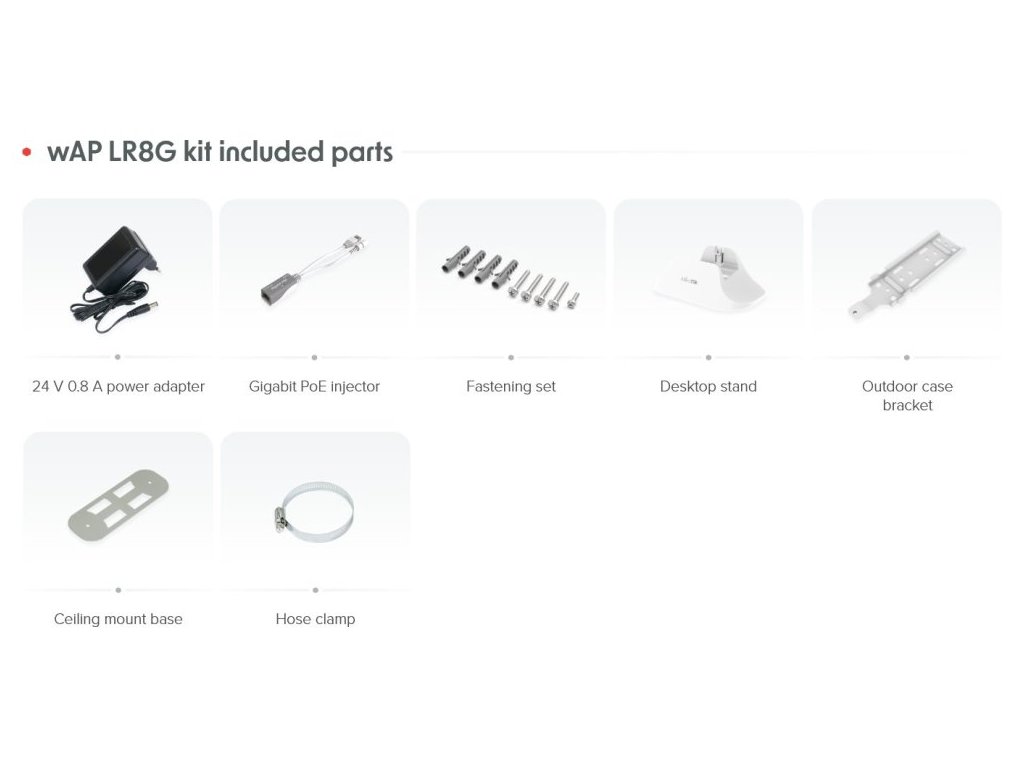 MikroTik wAP LR8G kitMikroTik wAP LR8G kit je venkovní bezdrátový přístupový bod s integrovaným LoRa (Long Range) rozhraním, navržený pro IoT aplikace. Zařízení kombinuje LoRa bránu a přístupový bod s podporou Wi-Fi (2,4 GHz).