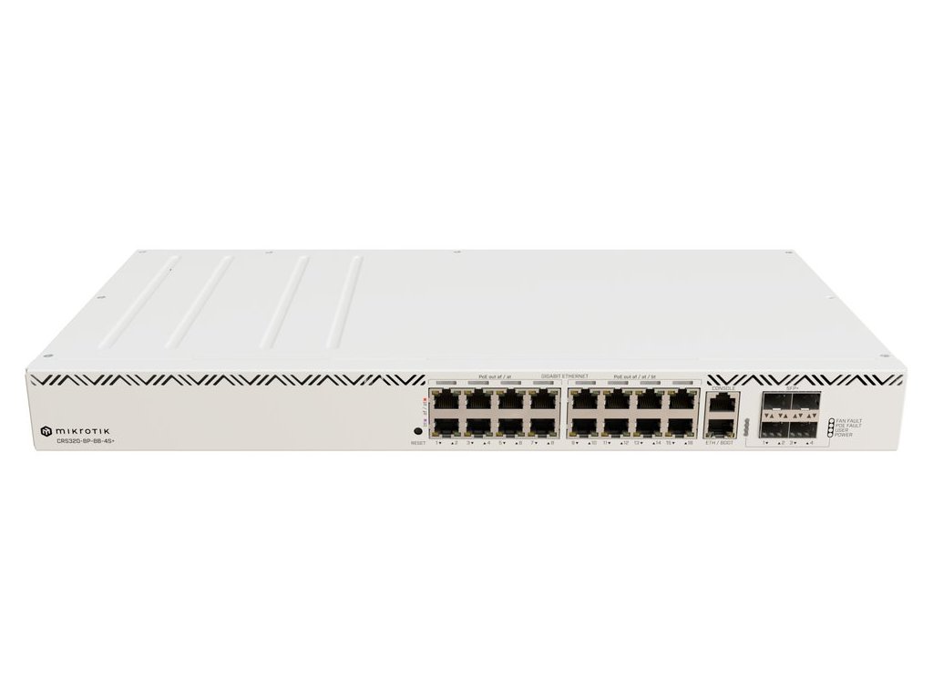 MikroTik Switch CRS320-8P-8B-4S+R, 8x GbE PoE+, 8x GbE PoE++, 4x SFP+, RouterOS, L5, Rack (PoE budget max. 1150W)