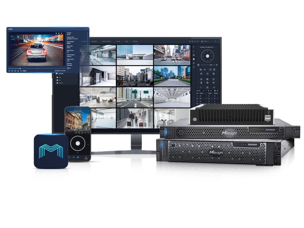 Zařízení Milesight VMS Surveillance Appliance podporuje až 128 kanálů video streamu na server a je plně kompatibilní se síťovými kamerami Milesight, senzory a síťovými kamerami třetích stran.