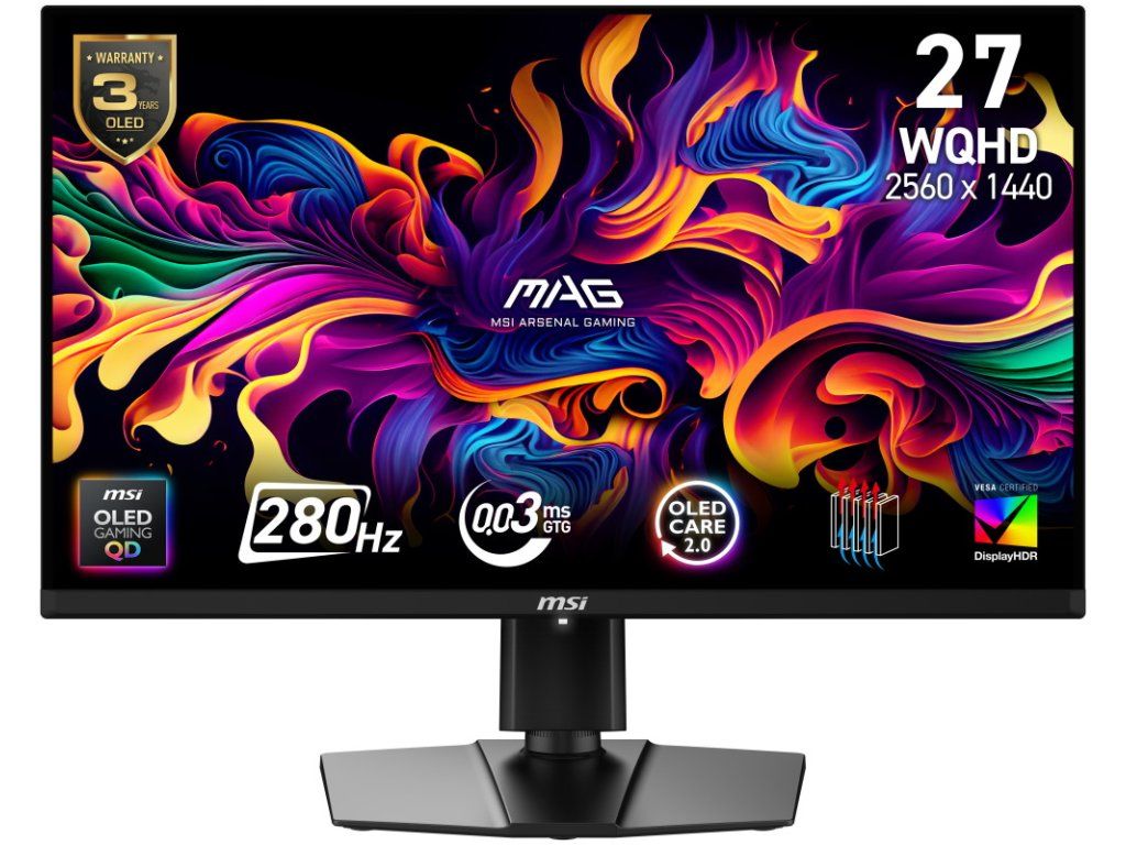 MSI Gaming MAG 271QP QD-OLED X28/ 26,5"/ 2560x1440/ OLED/ 0,03ms/ 280Hz/ 250cd/m2/ 1500000:1/ HDMI/ DP/ VESA/ černý