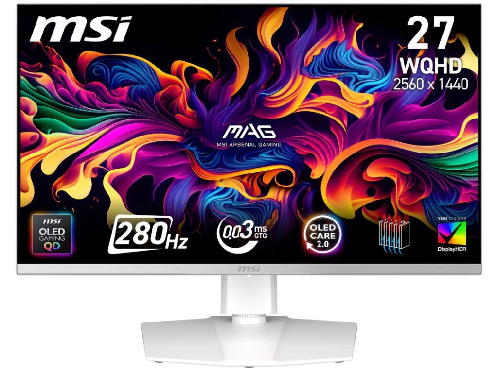 MSI Gaming MAG 272QPW QD-OLED X28/ 26,5"/ 2560x1440/ OLED/ 0,03ms/ 280Hz/ 250cd/m2/ 1500000:1/ HDMI/ DP/ VESA/ bílý