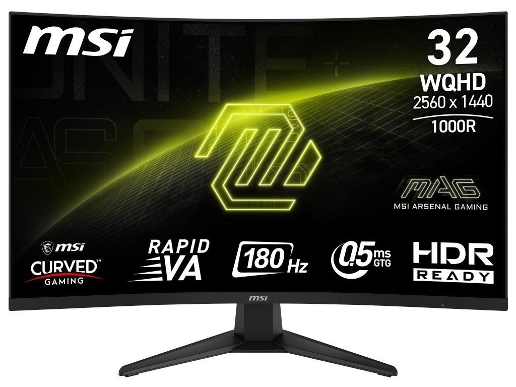 MSI Gaming MAG 325CQF/ 31,5"/ 2560x1440/ VA/ 0,5ms/ 180Hz/ 300cd/m2/ 3500:1/ HDMI/ DP/ VESA/ černý