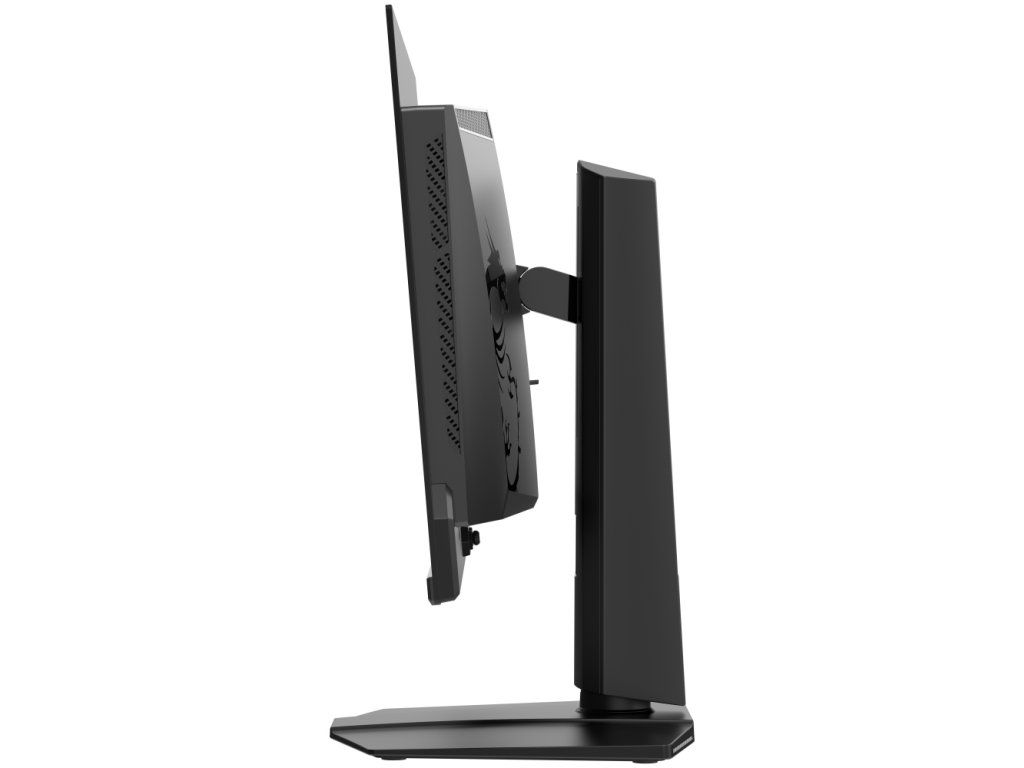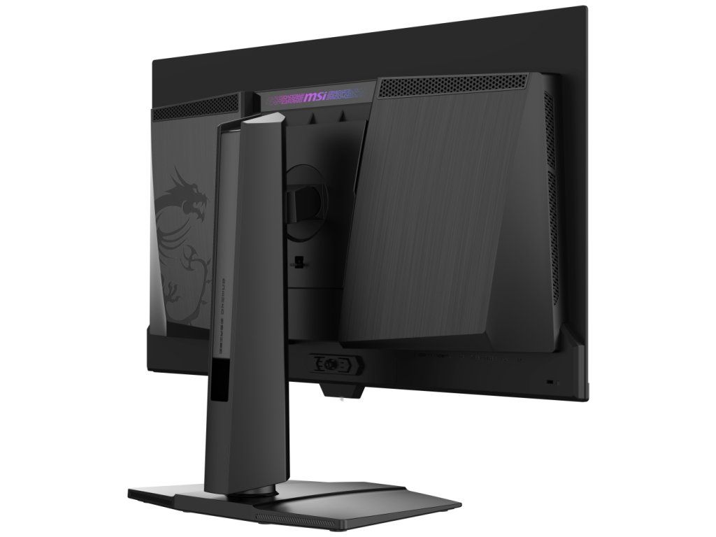 Bezrámový design s antireflexní úpravou povrchu minimalizuje odrazy a maximalizuje pohlcení do hry. Plně nastavitelný stojan umožňuje přizpůsobení výšky v rozsahu 110 mm, náklonu -5° až +20°, otáčení -30° až +30° a otočení do portrétu -90° až +90°. Úhel pohledu 178° horizontálně i vertikálně zajišťuje stabilní obraz z jakékoliv pozice. Monitor podporuje VESA 100 × 100 mm montáž na stěnu nebo rameno a je vybaven Kensington zámkem pro fyzické zabezpečení.