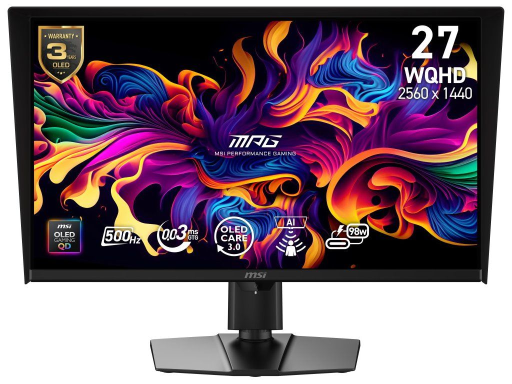 MSI Gaming MPG 271QR QD-OLED X50/ 26,5"/ 2560x1440/ OLED/ 0,03ms/ 500Hz/ 300cd/m2/ 1500000:1/ HDMI/ DP/ USB/ VESA/ černý