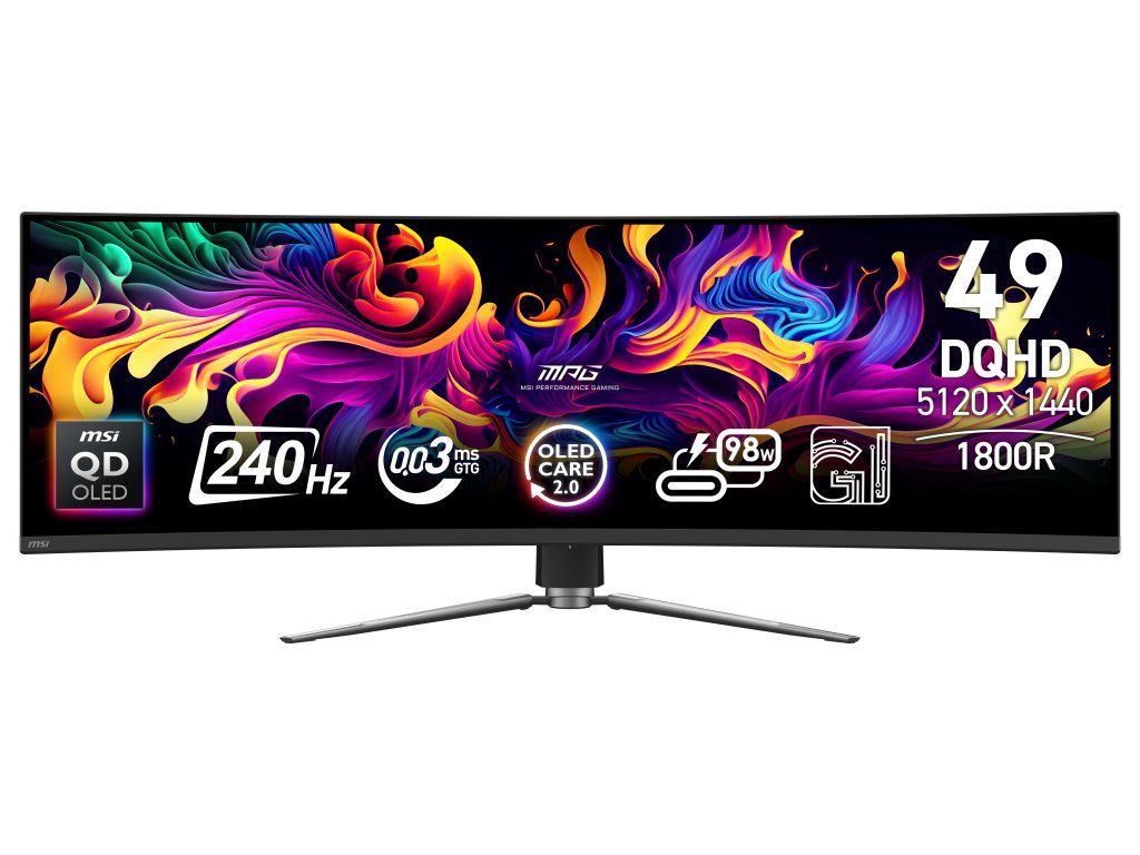 MSI Gaming MPG 491CQPX QD-OLED/ 49"/ 5120x1440/ OLED/ 0,03ms/ 240Hz/ 250cd/m2/ 1500000:1/ HDMI/ DP/ 1x USB/ VESA/ černý