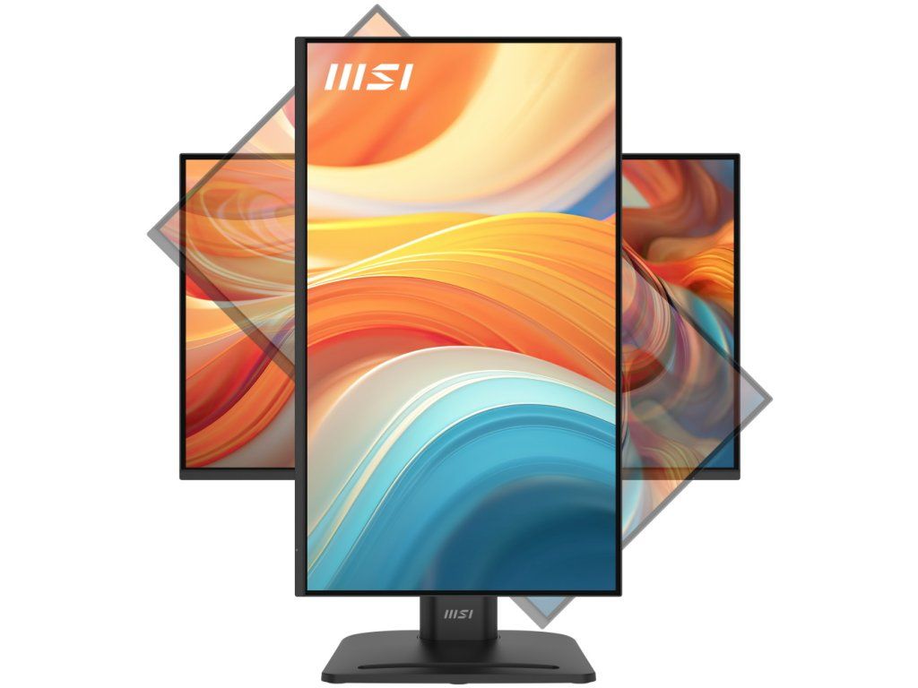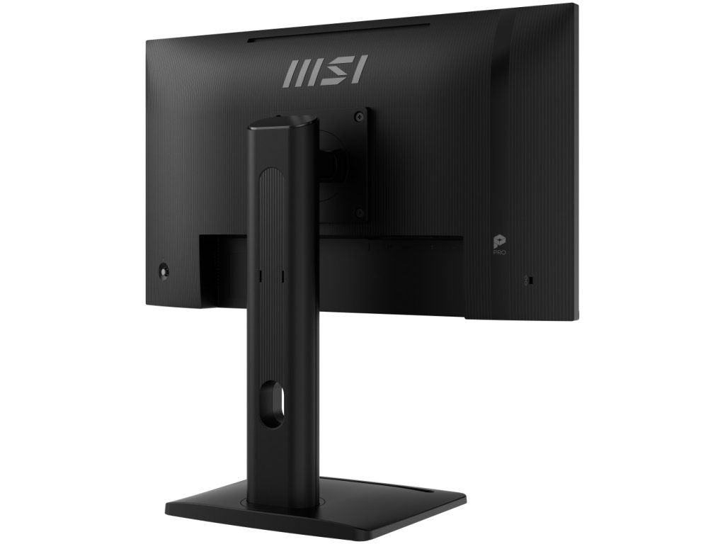 Ergonomický stojan umožňuje nastavení výšky (0–130 mm), otáčení (-45° až +45°), náklon (-5° až +20°) a pivotování (-90° až +90°). Monitor je vybaven držákem pro montáž mini-PC přímo na zadní stranu, což šetří místo na pracovním stole. Certifikace TÜV a technologie MSI EyesErgo s Anti-Flicker chrání zrak při dlouhodobém používání.