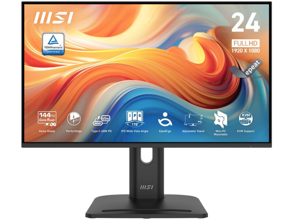 Monitor MSI PRO MP245PHG E14 kombinuje profesionální vlastnosti s herními technologiemi. 23,8" IPS panel s rozlišením 1920 × 1080 px a obnovovací frekvencí 144 Hz nabízí plynulý obraz při práci i zábavě. Rychlá odezva 1 ms (MPRT) a podpora AMD FreeSync™ eliminují trhání obrazu v rozsahu 48–144 Hz.