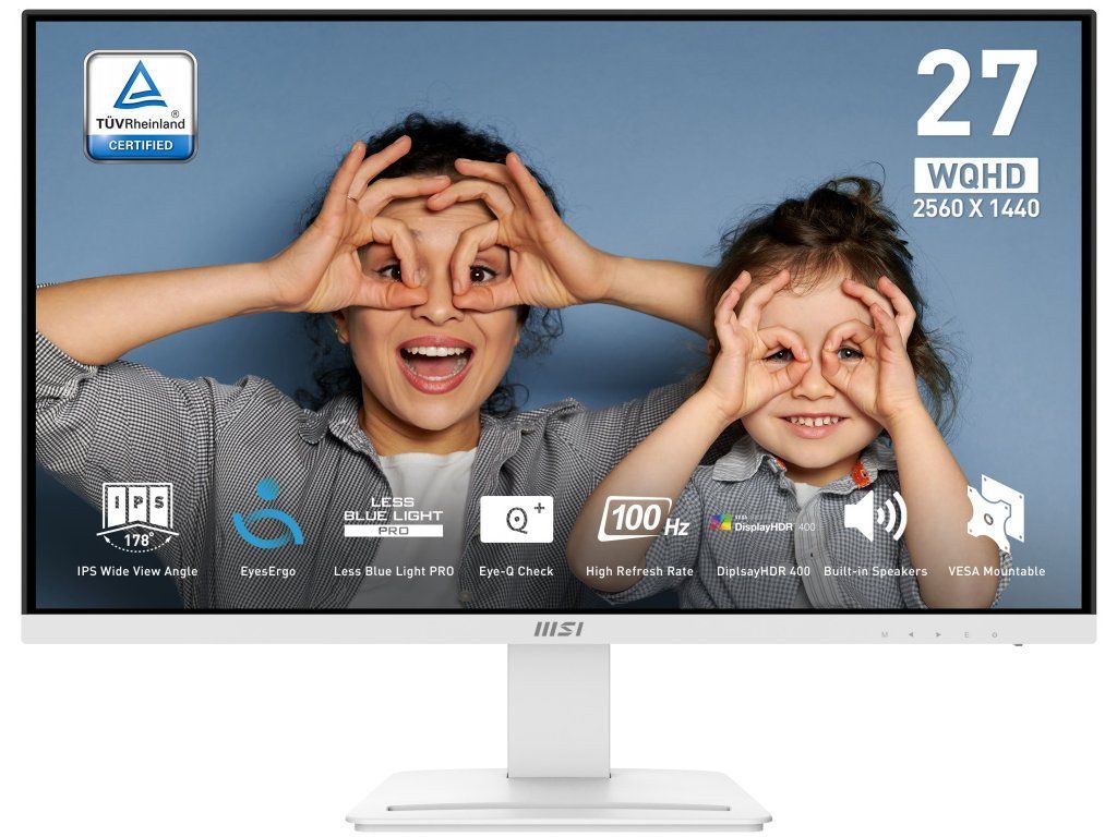 MSI PRO MP273Q E14/ 27"/ 2560x1440/ IPS/ 4ms/ 100Hz/ 400cd/m2/ 1300:1/ HDMI/ DP/ VESA/ bílý