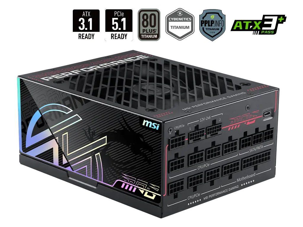 MSI zdroj MPG Ai1300TS PCIE5/ 1300W/ ATX3.1/ akt. PFC/ 12 let záruka/ 120mm ventilátor/ modulární/ 80PLUS Titanium