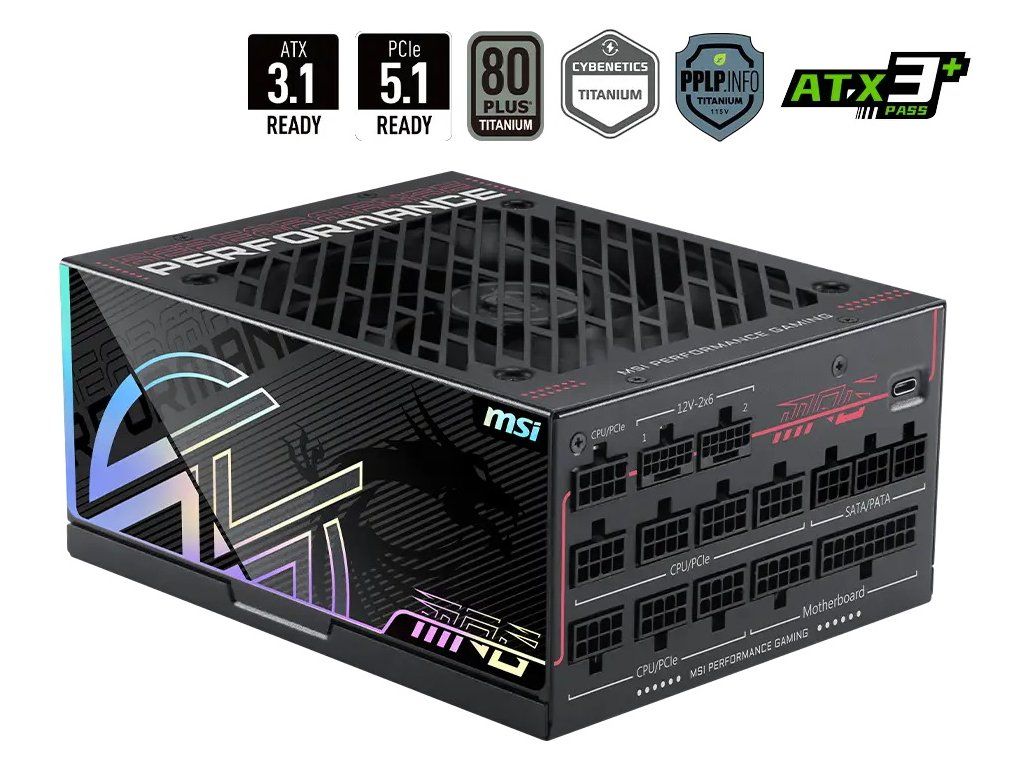 MSI zdroj MPG AI1600TS PCIE5/ 1600W/ ATX3.1/ akt. PFC/ 12 let celk. záruka/ 135mm fan/ modulární kabeláž/ 80PLUS Titaniu