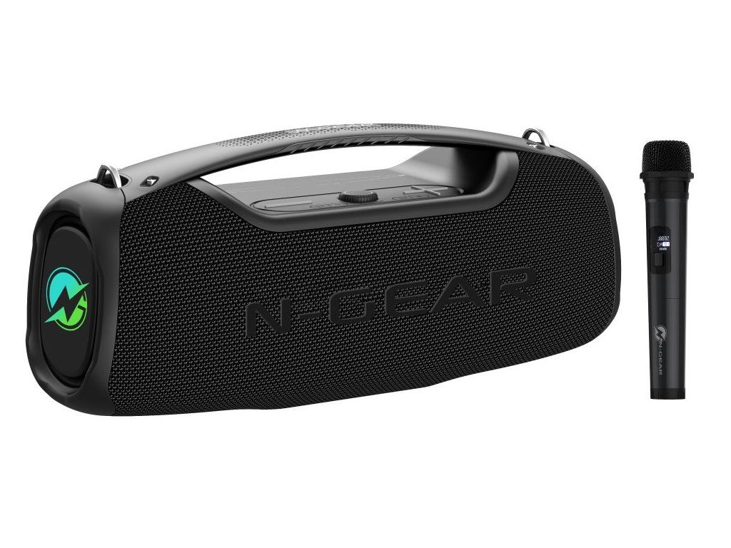N-GEAR NRG 500Přenosný reproduktor s výkonem 500 W a barevným LED podsvícením zajistí dostatečné ozvučení vaší párty. Podporuje navíc funkci True Wireless Stereo (TWS), která umožňuje dvěma bezdrátovým reproduktorům vytvářet stereo zvuk. Hudbu lze přehrávat jak drátově skrze AUX vstup, tak i bezdrátově pomocí technologie Bluetooth. Pokud si párty chcete opravdu užít, můžete využít také bezdrátový mikrofon (součástí balení). Pro rychlé přehrávání z paměťových médií je přítomen USB port a microSD slot. Vestavěná baterie s kapacitou 18 000 mAh zajistí 6 až 8 hodin provozu. Nabíjení je realizováno skrze konektor USB-C.