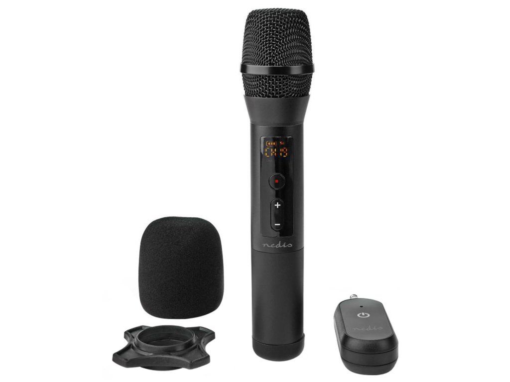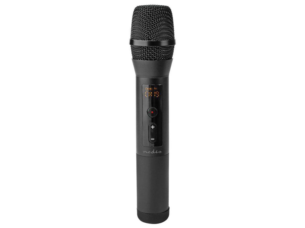 Nedis MPWL200BKZákladem každé skvělé karaoke párty je bezdrátový mikrofon, který poskytuje dostatečnou volnost v pohybu. Pro správnou funkci mikrofonu stačí pouze připojit bezdrátový přijímač s konektorem 6,35 mm jack do mikrofonního vstupu jakéhokoli reproduktoru a synchronizace již proběhne po zapnutí obou zařízení automaticky. Díky možnosti výběru z 20 frekvenčních kanálů zajistí kvalitní přenos bez zkreslení do vzdálenosti až 50 m. LCD displej zobrazuje informace o síle signálu, úrovni hlasitosti či stavu baterie. Mikrofon je napájen dvěma AA bateriemi a vydrží až 10 hodin v provozu. Přijímač k napájení využívá další dvě AA baterie. Součástí balení je také praktický stojánek a pop filtr.
