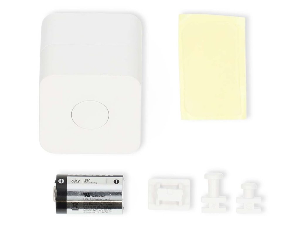 Součástí balení je CR2 baterie, lepící páska a tři druhy robotických prstů.