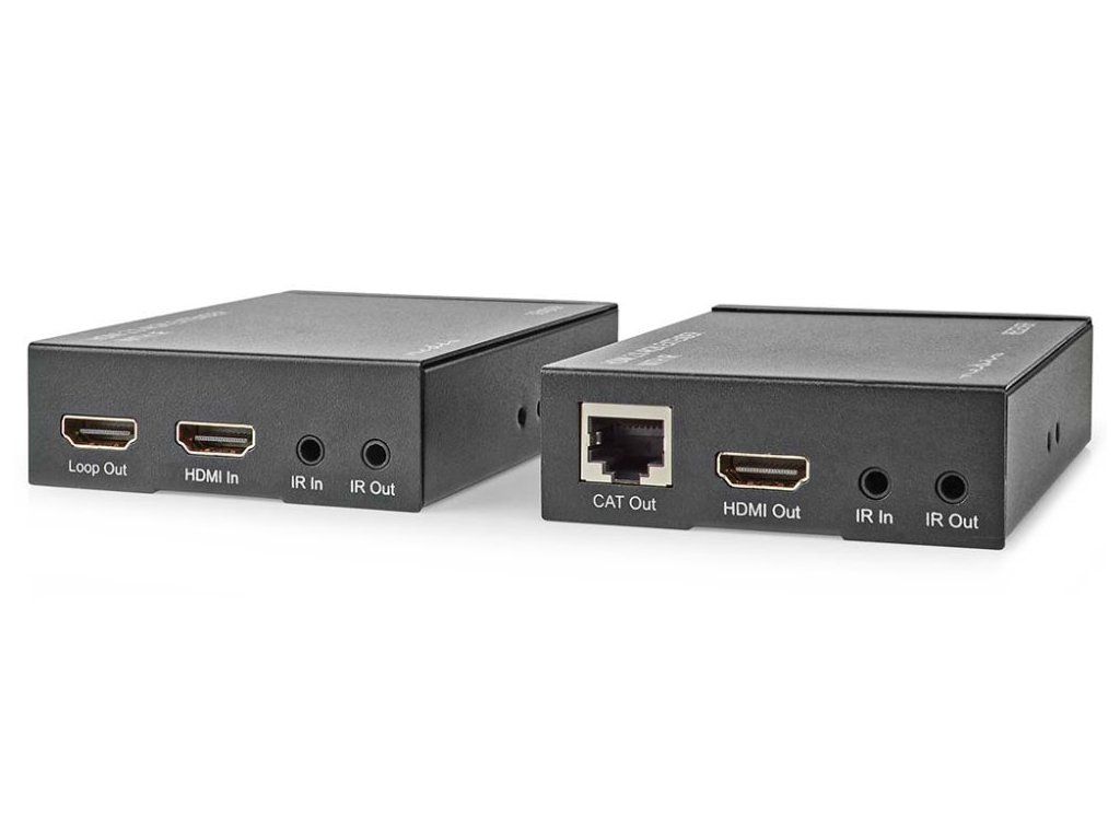 NEDIS HDMI extender/ přes Cat6/ do 60 m/ 4K@60Hz/ 18 Gbps/ HDMI/ LAN/ RS-232/ kov/ antracit