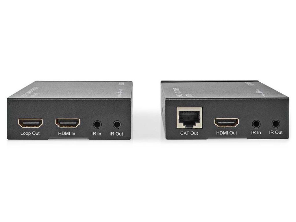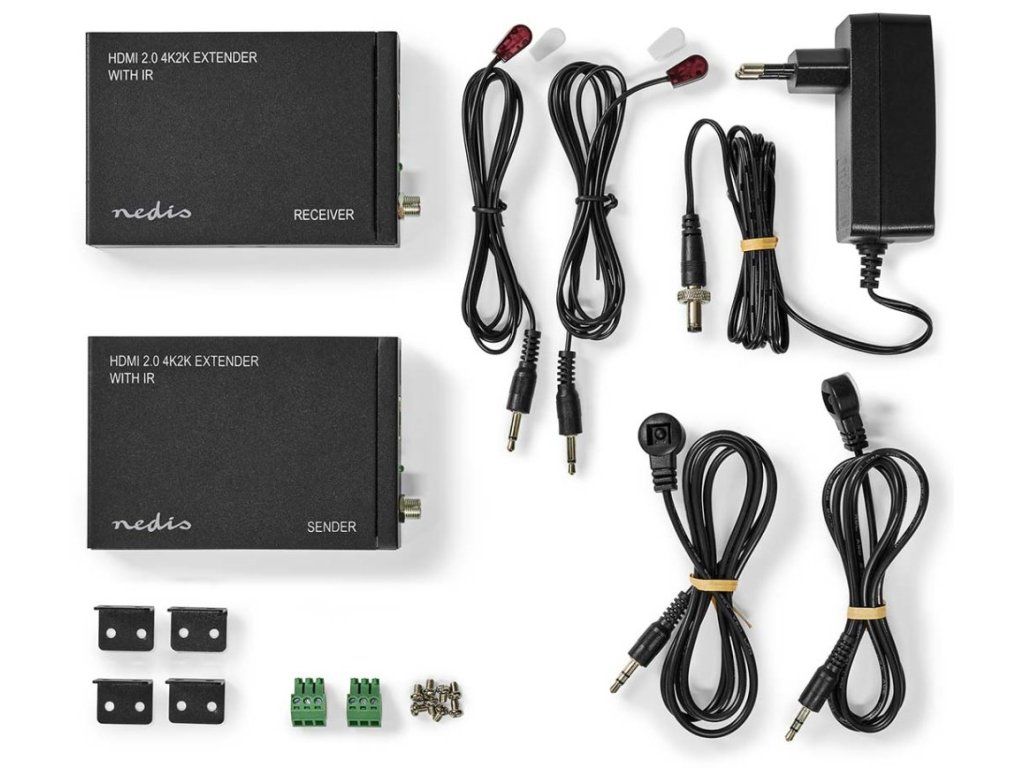 Nedis HDMI extenderPomocí tohoto extenderu lze jednoduše přenést HDMI signál v rozlišení 4K při 60 Hz na vzdálenost až 60 m. Konvertor (vysílač) převede standardní HDMI signál na síťový LAN a pomocí kabelu CAT6/6a/7 jej přenese do místa určení, kde je opět přeměněn na HDMI. Maximální datový tok 18 Gbps zajistí stabilní přenos. Vysílač i přijímač jsou vybaveny dvěma páry infračervených konektorů, které umožňují obousměrné použití dálkového ovládání. Napájení obou konvertorů je řešeno z napájecích adaptérů (součást balení).