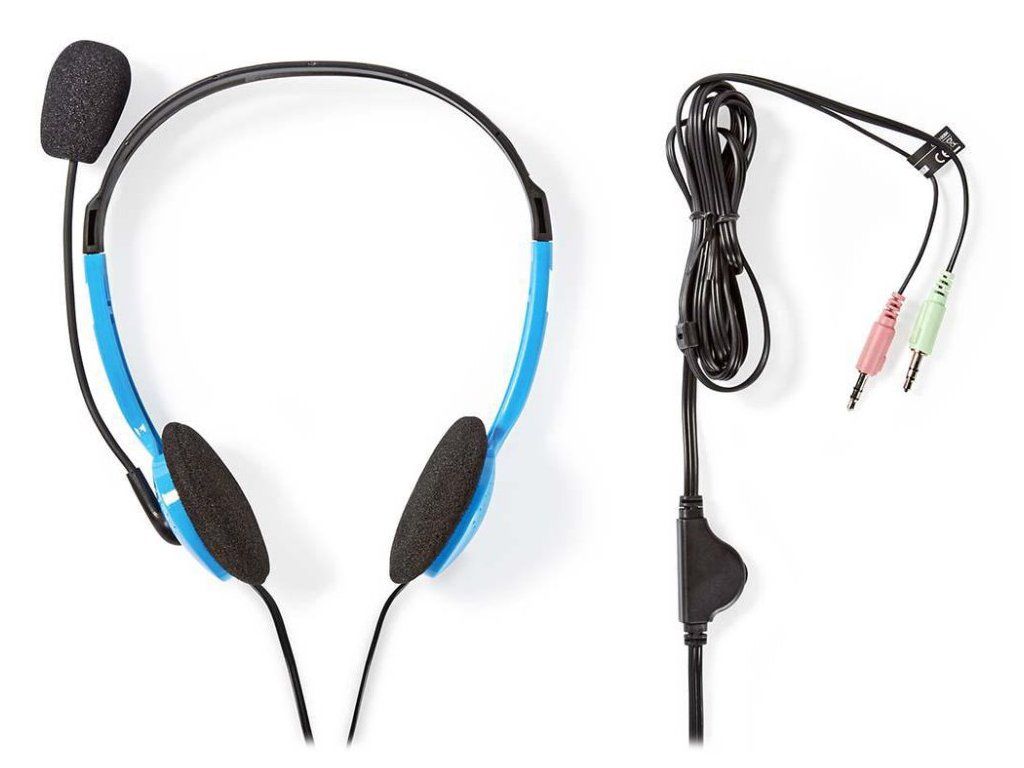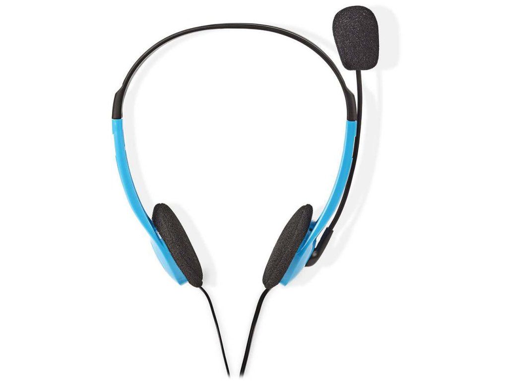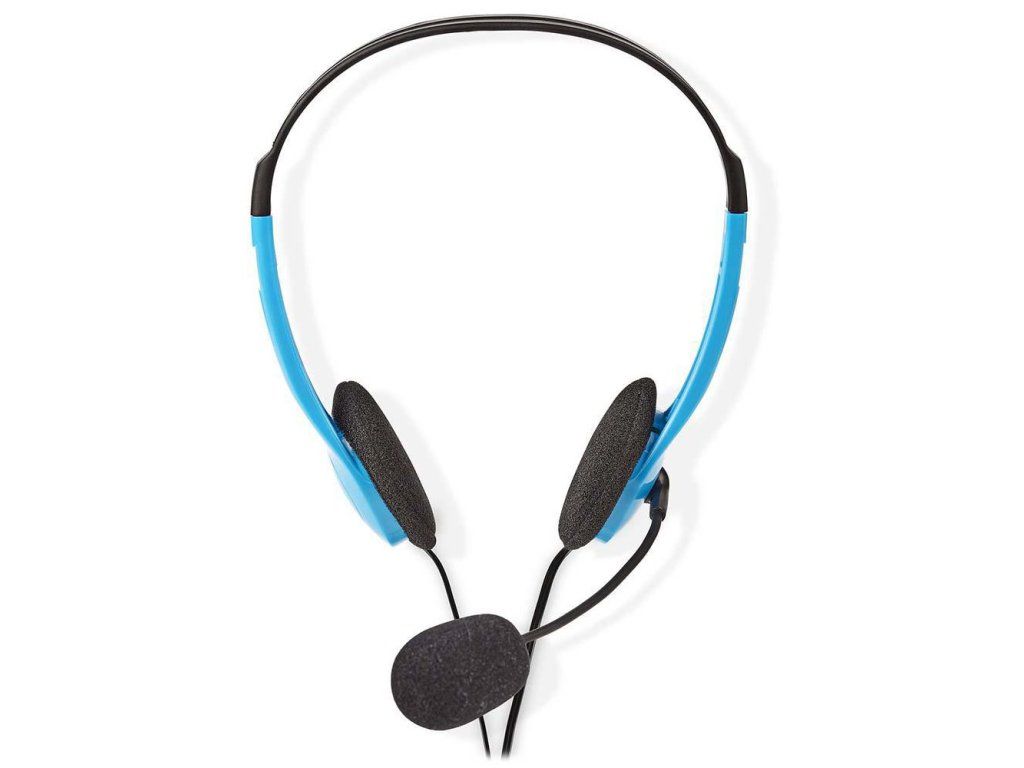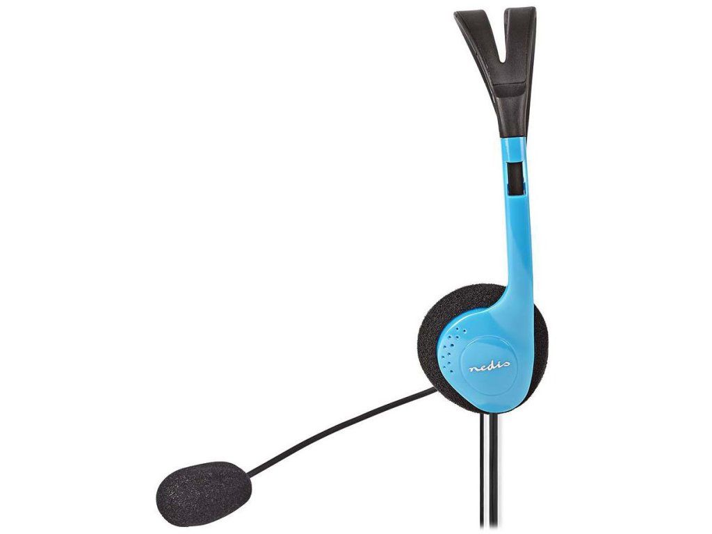 NEDIS headset CHST100BU/ drátová sluchátka + mikrofon/ 2x 3,5 mm jack/ kabel 2 m/ modrý