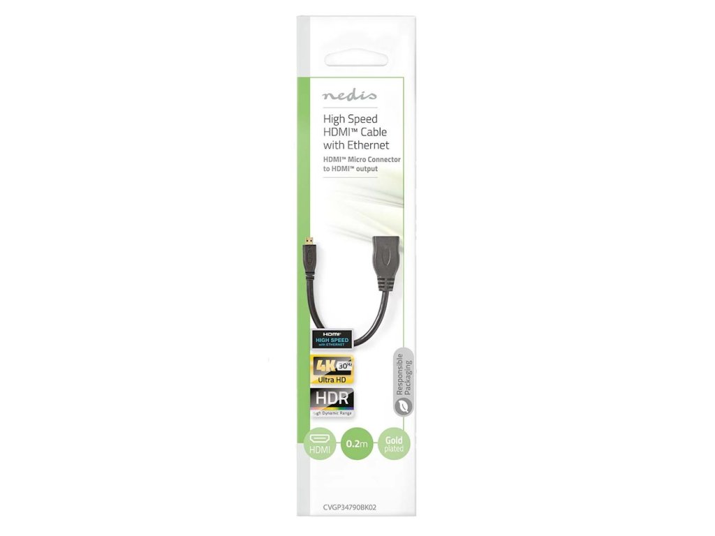 NEDIS High Speed HDMI kabel s Ethernetem/ micro HDMI zástrčka - HDMI zásuvka/ 4K@30Hz/ 10.2 Gbps/ 20cm