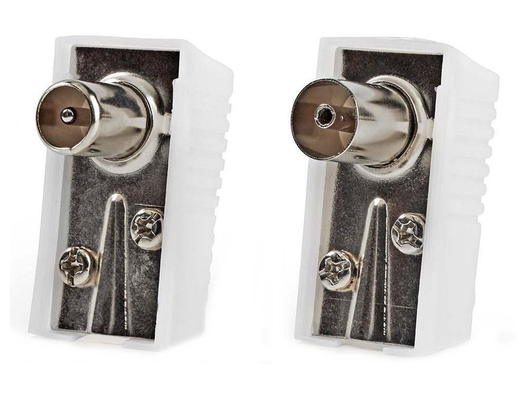 NEDIS IEC (koaxiální) konektor/ zástrčka + zásuvka - úhlový/ 2 kusy/ bílá/ BOX