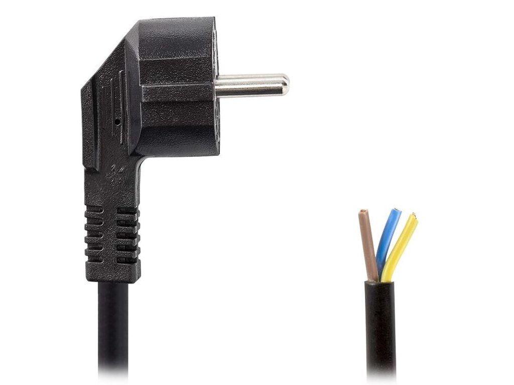 NEDIS napájecí kabel/ Typ F zástrčka - otevřený/ přímý/ úhlový/ černý/ bulk/ 3m