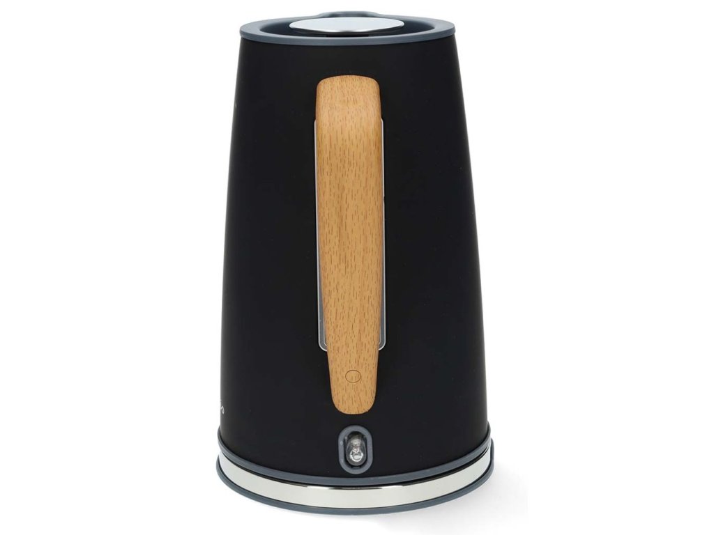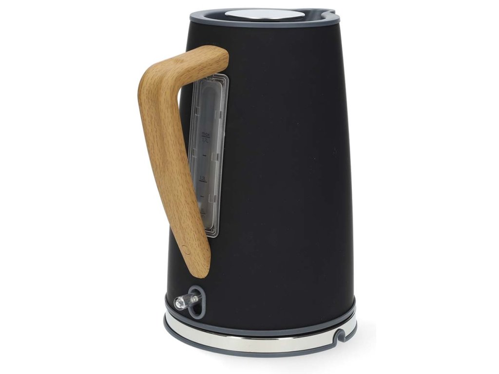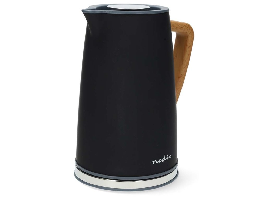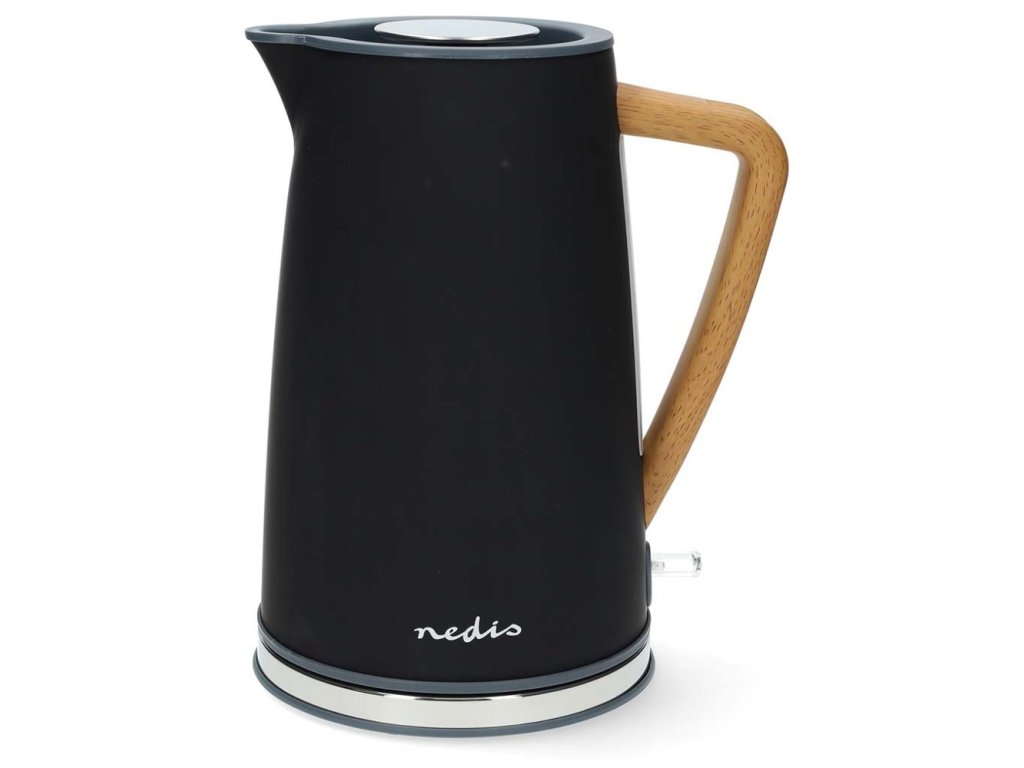 Nedis KAWK510EBKStylová rychlovarná konvice o objemu 1,7 litru. Skryté topné těleso s výkonem 1850 až 2200 W a vyjímatelný filtr zaručují, že voda vždy rychle dosáhne varu, a zároveň brání usazování vodního kamene. Mezi další přednosti patří otočná 360° základna a ochrana zamezující zapnutí konvice, ve které není dostatek vody. Díky kombinaci nerezové oceli, dřeva a gumy představuje tato konvice stylový, odolný a snadno omyvatelný doplněk do kuchyně. Přívodní kabel je možné navinout na základnu pro pohodlné skladování.