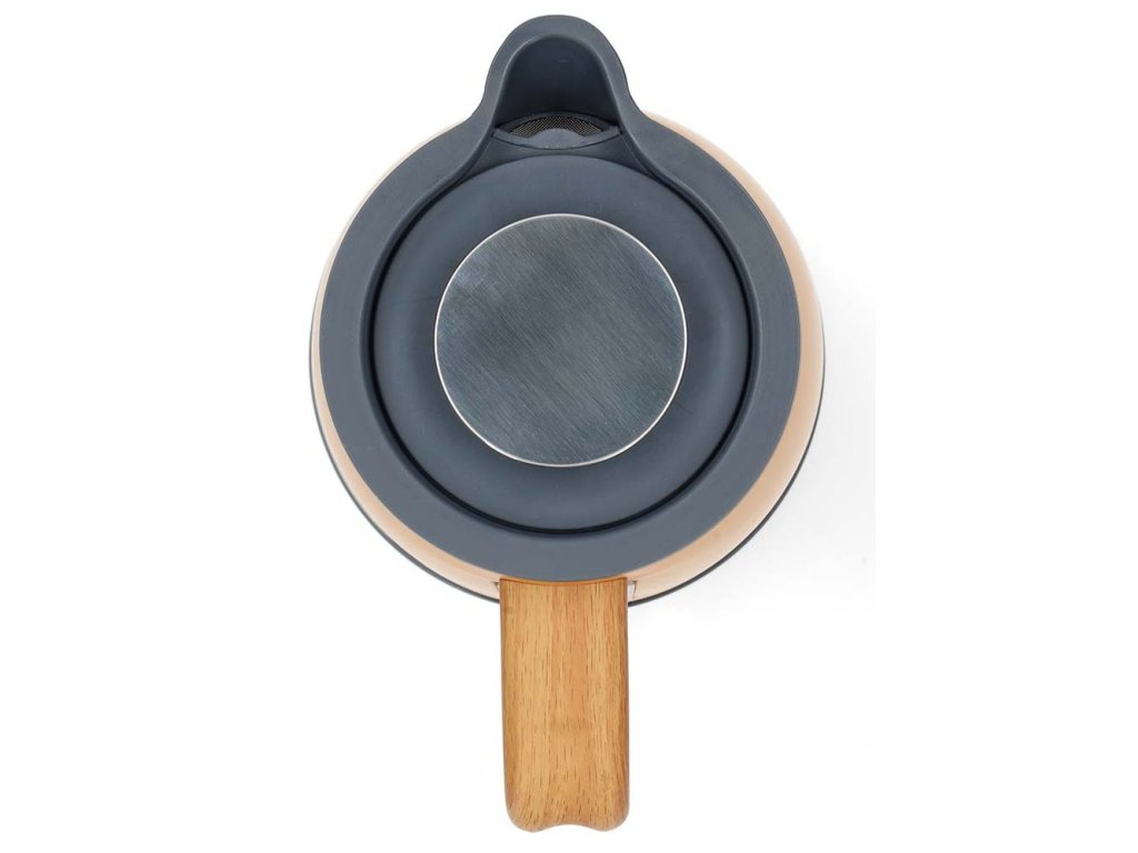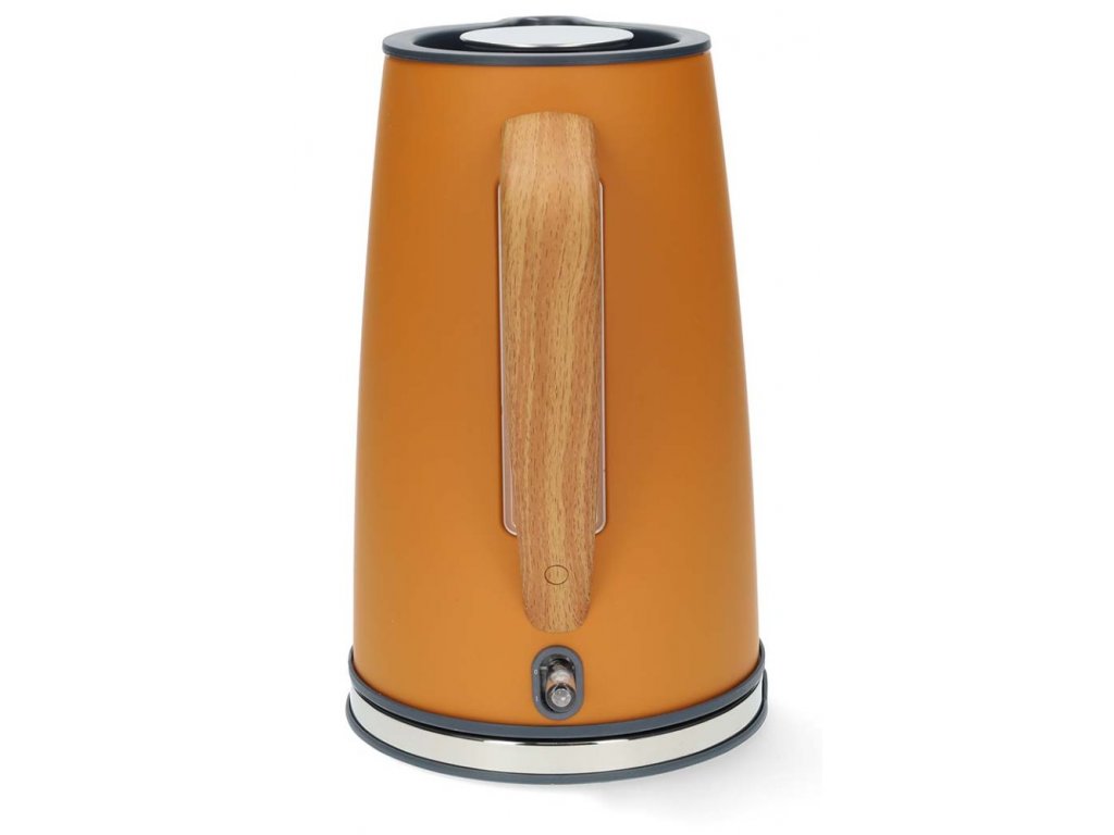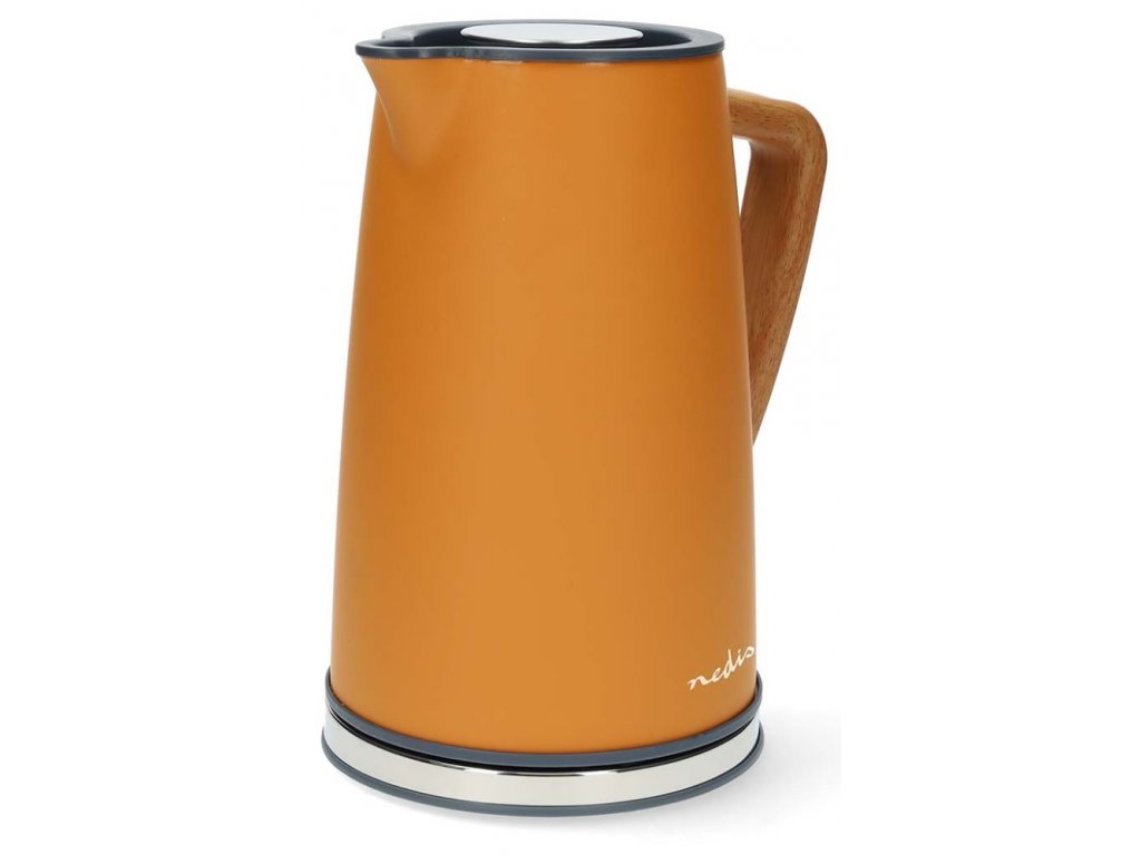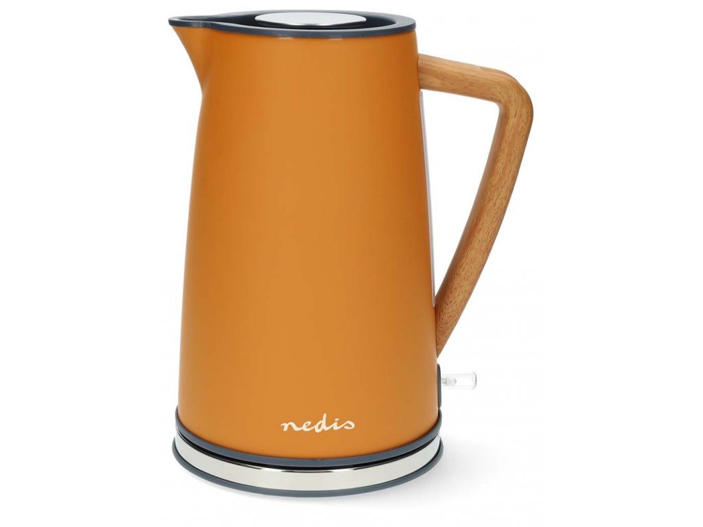 Nedis KAWK510EORStylová rychlovarná konvice o objemu 1,7 litru. Skryté topné těleso s výkonem 1850 až 2200 W a vyjímatelný filtr zaručují, že voda vždy rychle dosáhne varu, a zároveň brání usazování vodního kamene. Mezi další přednosti patří otočná 360° základna a ochrana zamezující zapnutí konvice, ve které není dostatek vody. Díky kombinaci nerezové oceli, dřeva a gumy představuje tato konvice stylový, odolný a snadno omyvatelný doplněk do kuchyně. Přívodní kabel je možné navinout na základnu pro pohodlné skladování.