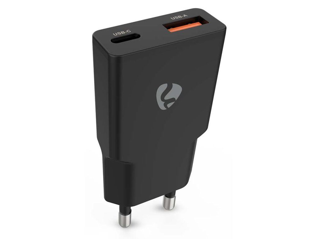 NEDIS síťová nabíječka/ 20 W/ PD 3.0/ rychlé nabíjení/ 1.5 / 2.0 / 2.22 / 3.0 A/ USB-A/ USB-C/ černá