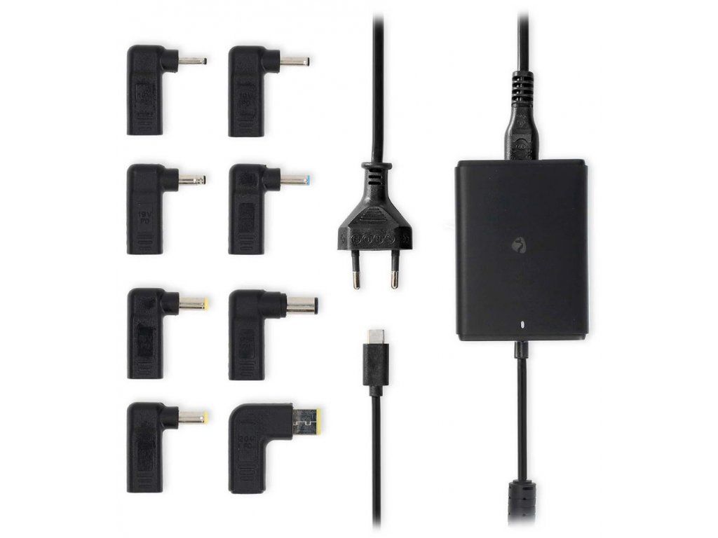 Nedis NBAU100110BKUniverzální napájecí adaptér s výstupním napětím 5–20 V disponuje portem USB-C, díky čemuž je vhodný nejen pro nabíjení notebooků, ale také chytrých telefonů a tabletů. Součástí balení je 8 výměnných napájecích konektorů, které lze nasadit na USB-C konektor. To umožňuje použití s mnoha dalšími přístroji. Nabíječka komunikuje s notebookem a vybírá nejefektivnější nabíjecí profil. Díky technologii GaN je účinnější, menší, lehčí a méně energeticky náročný než tradiční napájecí adaptéry.