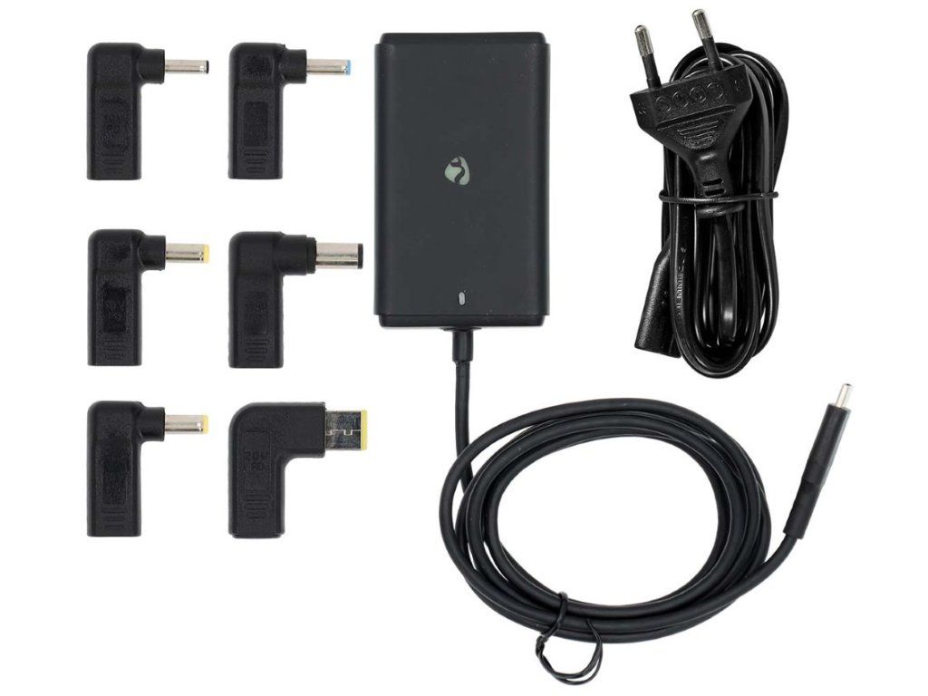Nedis NBAU65110BKUniverzální napájecí adaptér s výstupním napětím 5–20 V disponuje portem USB-C, díky čemuž je vhodný nejen pro nabíjení notebooků, ale také chytrých telefonů a tabletů. Součástí balení je 6 výměnných napájecích konektorů, které lze nasadit na USB-C konektor. To umožňuje použití s mnoha dalšími přístroji. Nabíječka komunikuje s notebookem a vybírá nejefektivnější nabíjecí profil. Díky technologii GaN je účinnější, menší, lehčí a méně energeticky náročný než tradiční napájecí adaptéry.