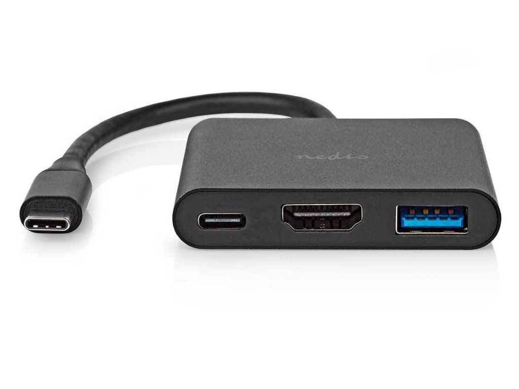 NEDIS USB 3.2 Gen 1 adaptér/ USB-C zástrčka - USB-A zásuvka - USB-C zásuvka/ výstup HDMI/ černý/ box/ 10 cm