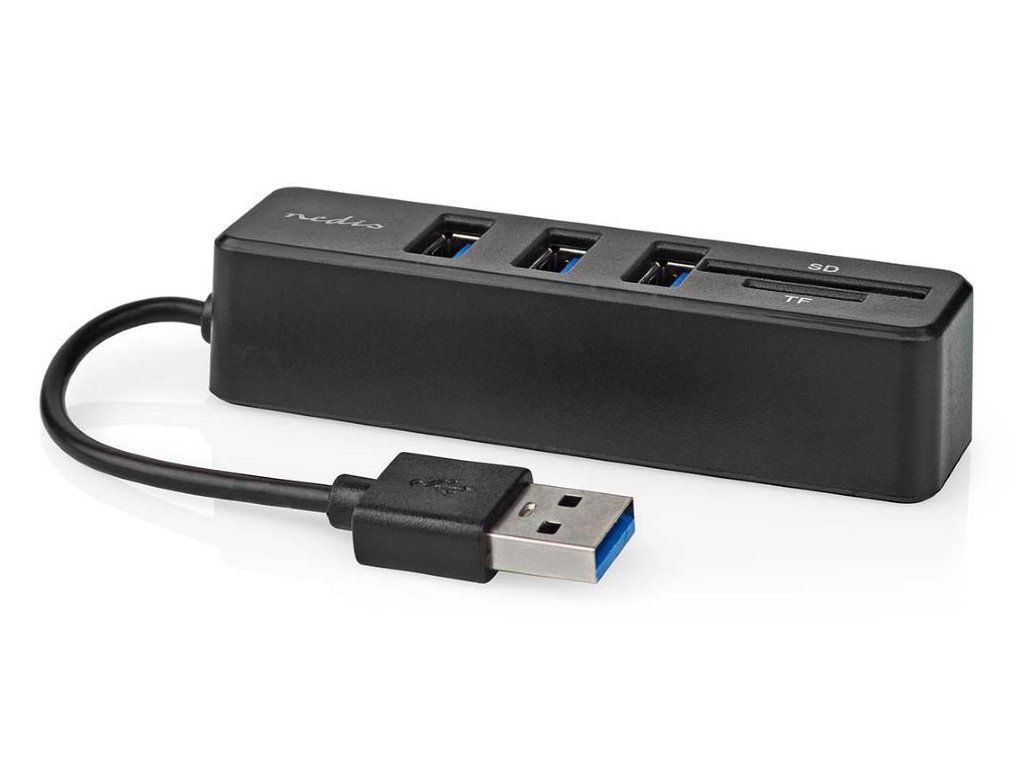 NEDIS USB hub/ zástrčka USB-A/ zásuvka USB-A/ 3 porty/ napájení z USB/ SD & MicroSD/ 3x USB/ černý
