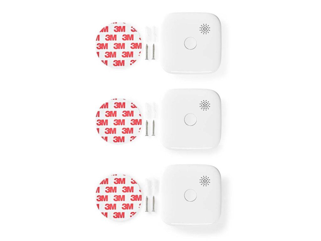 NEDIS Wi-Fi chytrý detektor kouře/ napájení z baterie/ hlasitost 85 dB/ výdrž snímače 10 let/ Android/ iOS/ 3ks/ bílý